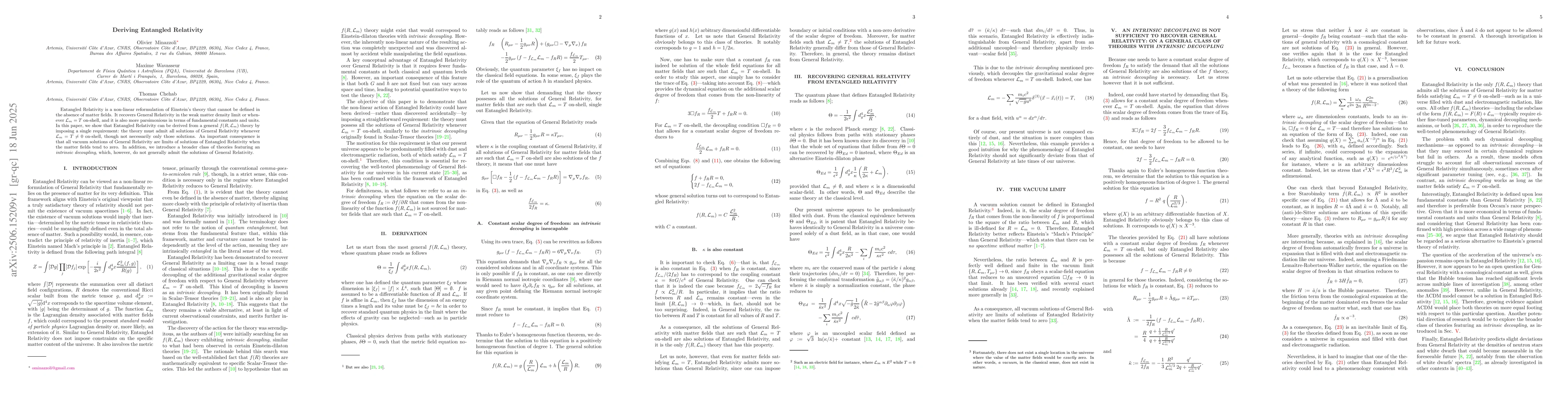 Entangled Relativity is a non-linear reformulation of Einstein's theory that cannot be defined in the absence of matter fields. It recovers General Relativity in the weak matter density limit or whenever $\mathcal{L}_m = T$ on-shell, and it is also more parsimonious in terms of fundamental constants and units. In this paper, we show that Entangled Relativity can be derived from a general $f(R,\mathcal{L}_m)$ theory by imposing a single requirement: the theory must admit all solutions of General Relativity whenever $\mathcal{L}_m = T \ne 0$ on-shell, though not necessarily only those solutions. An important consequence is that all vacuum solutions of General Relativity are limits of solutions of Entangled Relativity when the matter fields tend to zero. In addition, we introduce a broader class of theories featuring an intrinsic decoupling, which, however, do not generally admit the solutions of General Relativity.