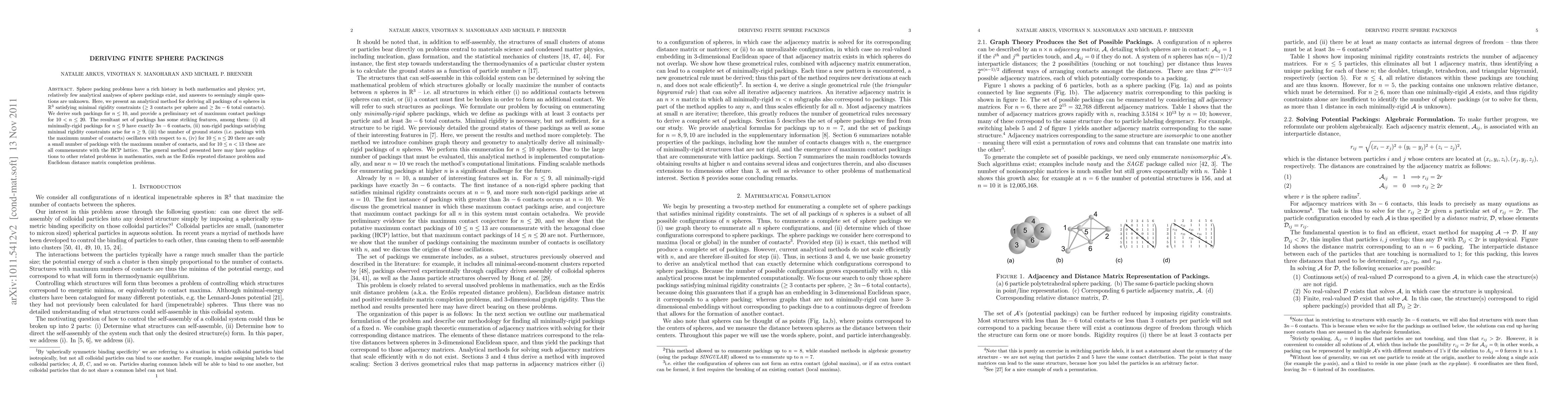 Sphere packing problems have a rich history in both mathematics and physics; yet, relatively few analytical analyses of sphere packings exist, and answers to seemingly simple questions are unknown. Here, we present an analytical method for deriving all packings of n spheres in R^3 satisfying minimal rigidity constraints (>= 3 contacts per sphere and >= 3n-6 total contacts). We derive such packings for n <= 10, and provide a preliminary set of maximal contact packings for 10 < n <= 20. The resultant set of packings has some striking features, among them: (i) all minimally rigid packings for n <= 9 have 3n-6 contacts, (ii) non-rigid packings satisfying minimal rigidity constraints arise for n >= 9, (iii) the number of ground states (i.e. packings with the maximal number of contacts) oscillates with respect to n, (iv) for 10 <= n <= 20 there are only a small number of packings with the maximal number of contacts, and for 10 <= n < 13 these are all commensurate with the HCP lattice. The general method presented here may have applications to other related problems in mathematics, such as the Erdos repeated distance problem and Euclidean distance matrix completion problems.
