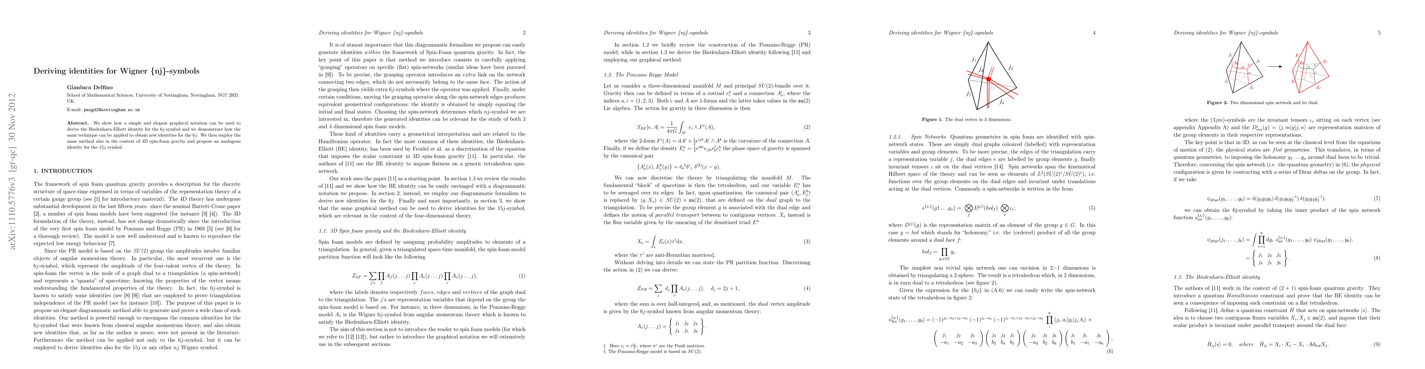 Researchers develop a graphical notation to derive identities for Wigner {nj}-symbols, including the 6j-symbol and an analogous identity for the 15j-symbol in spin-foam gravity.