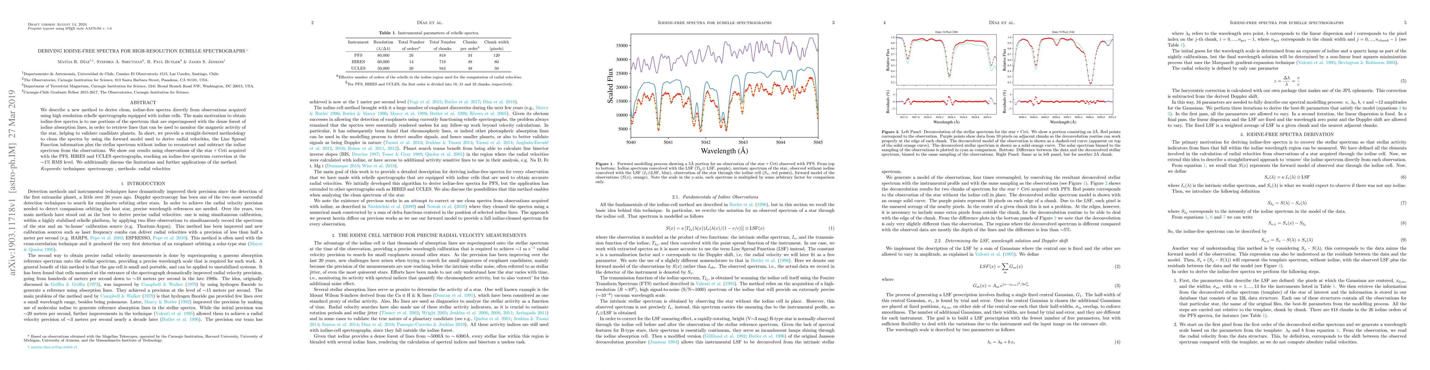This paper presents a novel method to obtain iodine-free spectra from high-resolution echelle spectrographs, enabling the use of spectral regions obscured by iodine lines to monitor stellar magnetic activity and validate planet candidates. The method involves reconstructing and subtracting the iodine spectrum using the forward model and Line Spread Function information, demonstrated with $\tau$ Ceti data, achieving a correction at the $\sim$1% RMS level.