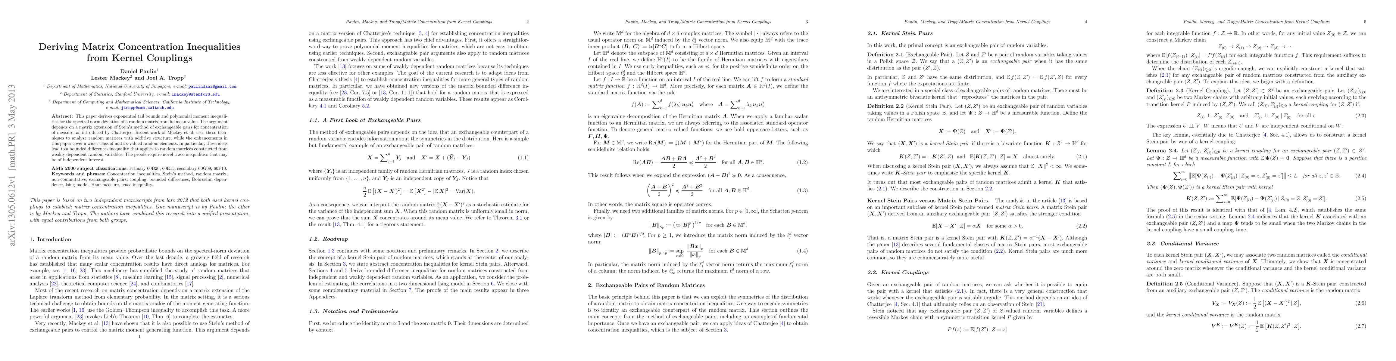 This paper derives exponential tail bounds and polynomial moment inequalities for the spectral norm deviation of a random matrix from its mean value. The argument depends on a matrix extension of Stein's method of exchangeable pairs for concentration of measure, as introduced by Chatterjee. Recent work of Mackey et al. uses these techniques to analyze random matrices with additive structure, while the enhancements in this paper cover a wider class of matrix-valued random elements. In particular, these ideas lead to a bounded differences inequality that applies to random matrices constructed from weakly dependent random variables. The proofs require novel trace inequalities that may be of independent interest.