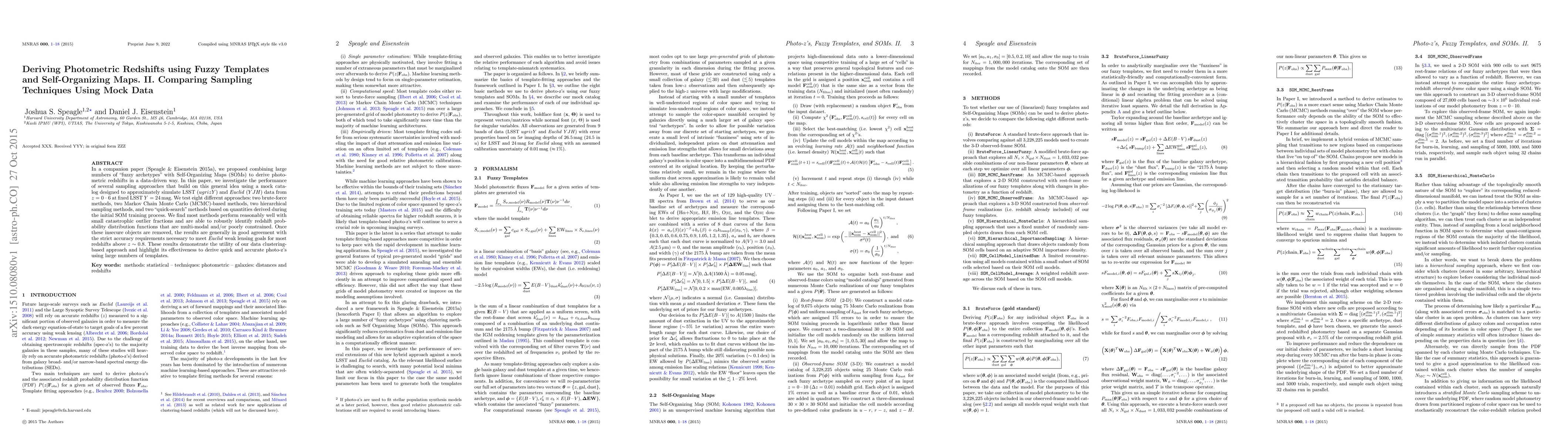 In a companion paper, we proposed combining large numbers of "fuzzy archetypes" with Self-Organizing Maps (SOMs) to derive photometric redshifts in a data-driven way. In this paper, we investigate the performance of several sampling approaches that build on this general idea using a mock catalog designed to approximately simulate LSST ($ugrizY$) and Euclid ($YJH$) data from $z=0-6$ at fixed LSST $Y=24$ mag. We test eight different approaches: two brute-force methods, two Markov Chain Monte Carlo (MCMC)-based methods, two hierarchical sampling methods, and two "quick-search" methods based on quantities derived during the initial SOM training process. We find most methods perform reasonably well with small catastrophic outlier fractions and are able to robustly identify redshift probability distribution functions that are multi-modal and/or poorly constrained. Once these insecure objects are removed, the results are generally in good agreement with the strict accuracy requirements necessary to meet Euclid weak lensing goals for most redshifts above $z \sim 0.8$. These results demonstrate the utility of our data clustering-based approach and highlight its effectiveness to derive quick and accurate photo-z's using large numbers of templates.