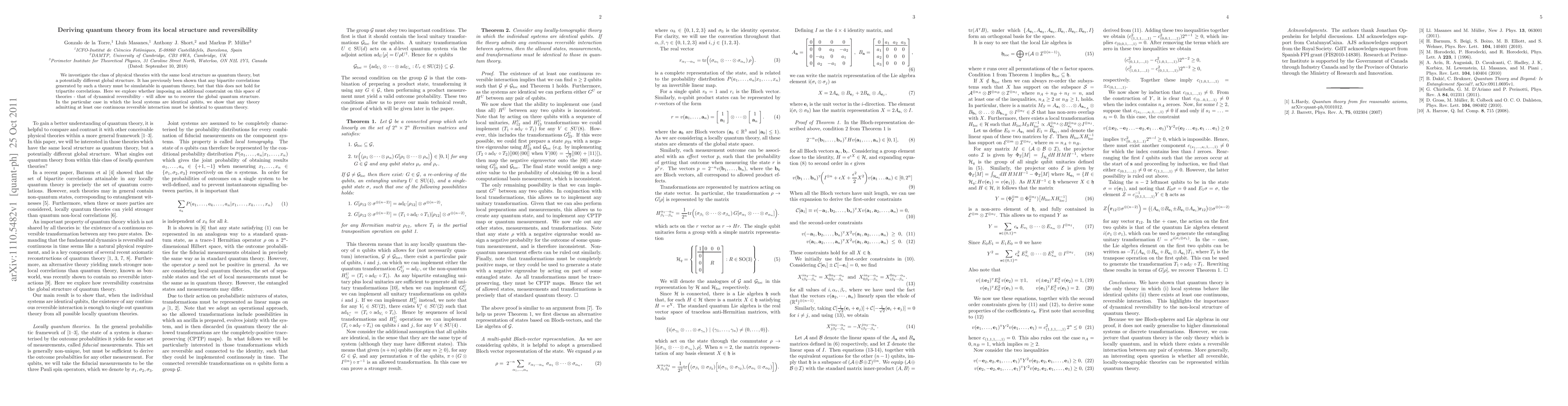 We investigate the class of physical theories with the same local structure as quantum theory, but a potentially different global structure. It has previously been shown that any bipartite correlations generated by such a theory must be simulatable in quantum theory, but that this does not hold for tripartite correlations. Here we explore whether imposing an additional constraint on this space of theories - that of dynamical reversibility - will allow us to recover the global quantum structure. In the particular case in which the local systems are identical qubits, we show that any theory admitting at least one continuous reversible interaction must be identical to quantum theory.