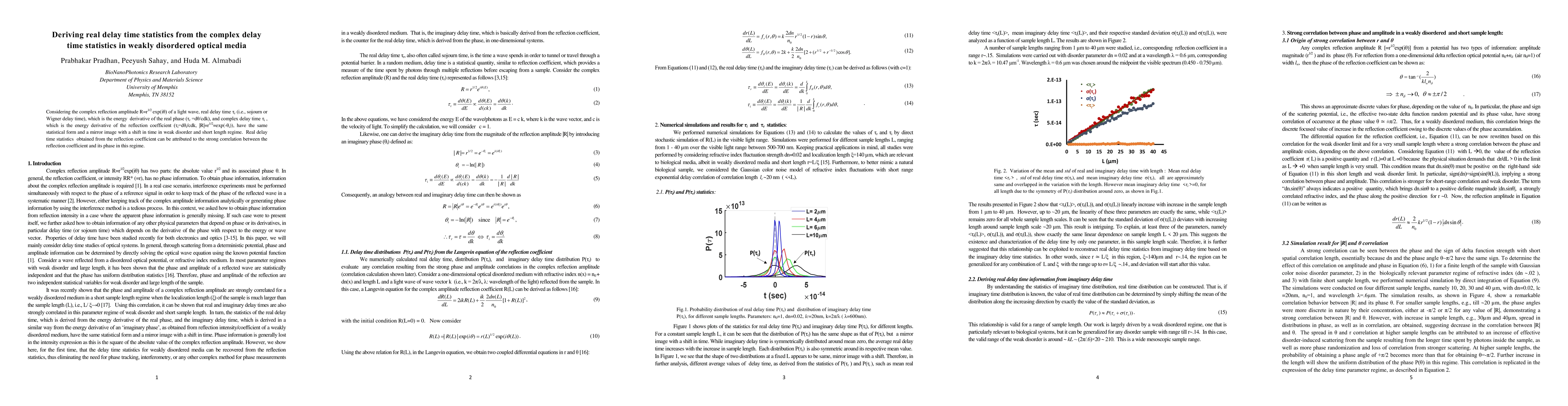 Researchers found that in weakly disordered optical media, real delay time statistics derived from reflection amplitude and phase have the same statistical form and a mirror image with a shift in time, attributed to strong correlation between reflection coefficient and its phase.