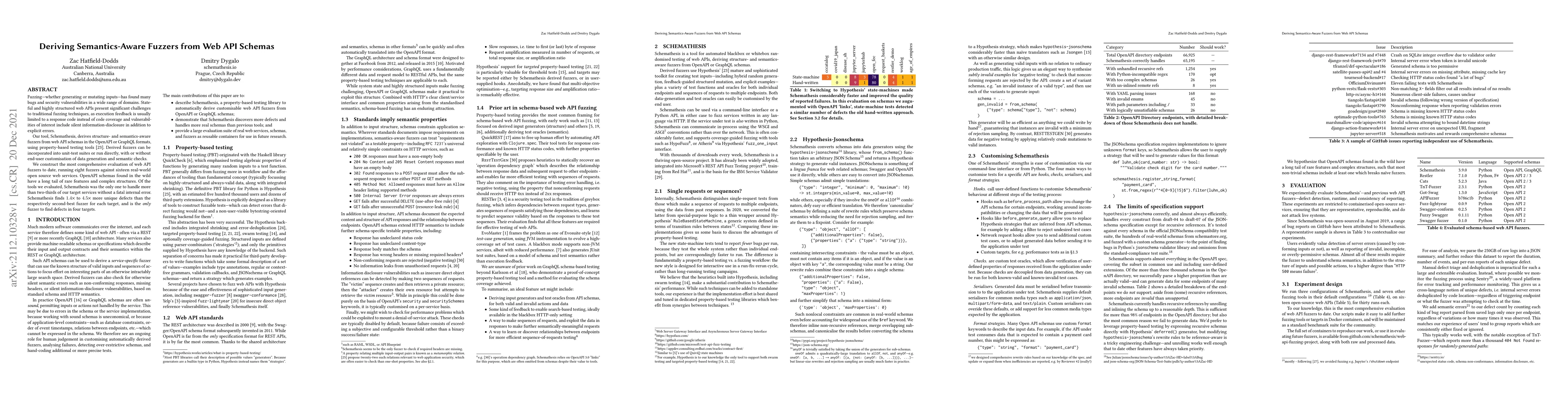 This research uses a combination of property-based testing and OpenAPI schema analysis to derive semantics-aware fuzzers for Web APIs.