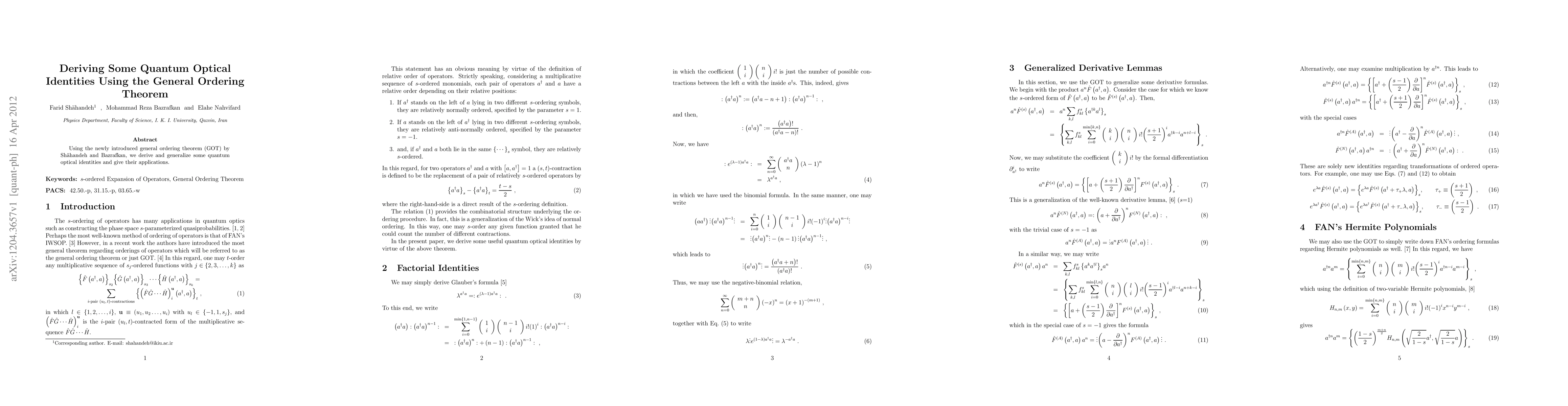 Using the newly introduced general ordering theorem (GOT) by Sh\"ahandeh and Bazrafkan, we derive and generalize some quantum optical identities and give their applications.