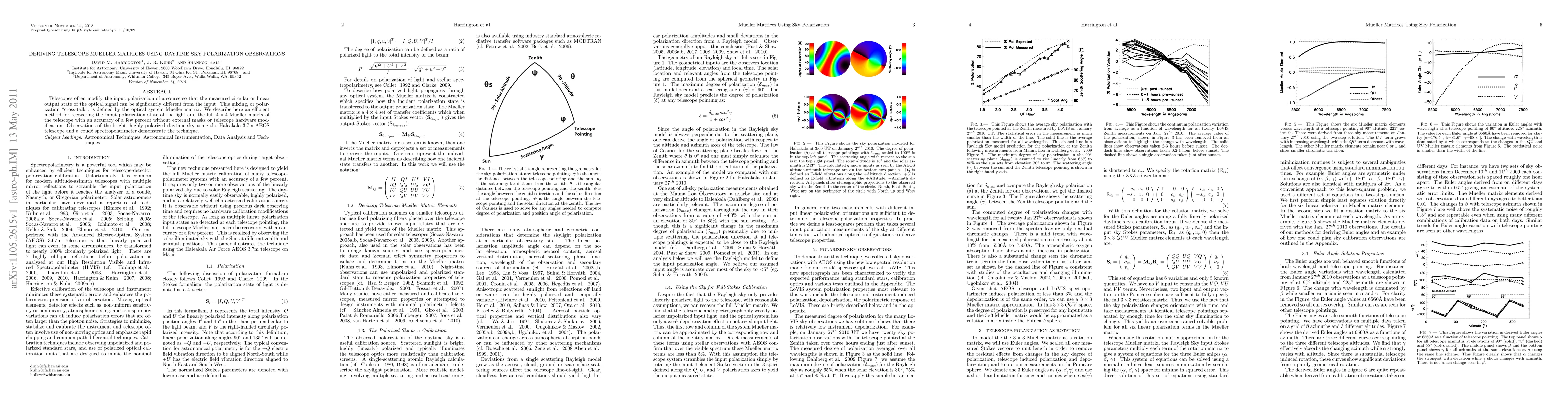 Telescopes often modify the input polarization of a source so that the measured circular or linear output state of the optical signal can be signficantly different from the input. This mixing, or polarization "cross-talk", is defined by the optical system Mueller matrix. We describe here an efficient method for recovering the input polarization state of the light and the full 4 x 4 Mueller matrix of the telescope with an accuracy of a few percent without external masks or telescope hardware modification. Observations of the bright, highly polarized daytime sky using the Haleakala 3.7m AEOS telescope and a coude spectropolarimeter demonstrate the technique.