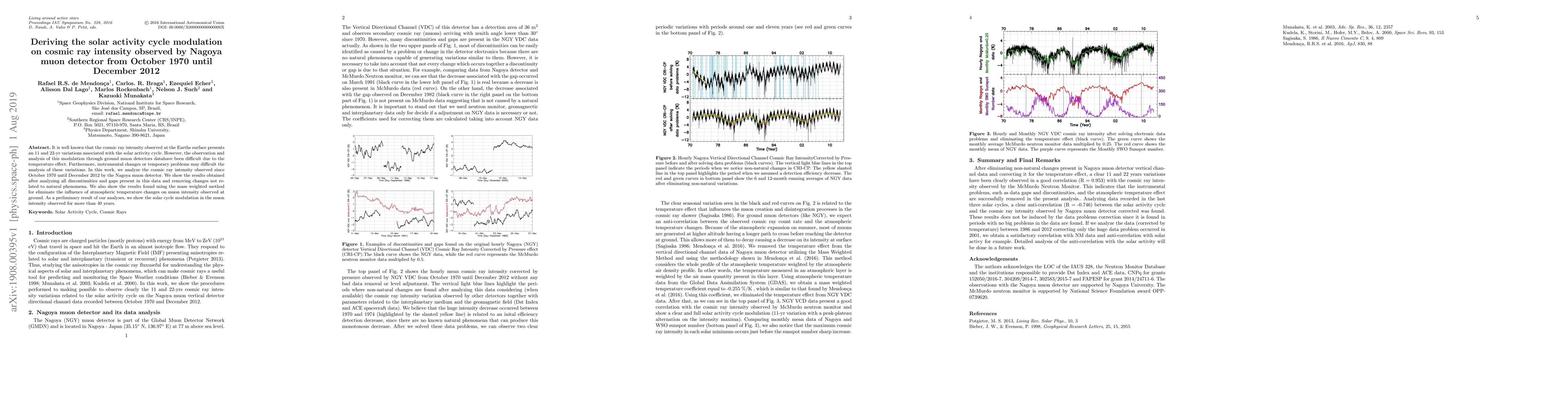 It is well known that the cosmic ray intensity observed at the Earth's surface presents an 11 and 22-yr variations associated with the solar activity cycle. However, the observation and analysis of this modulation through ground muon detectors data is make difficult due to the temperature effect. Furthermore, detector electronic changes or temporary problems may difficult the analysis of these variations. In this work, we analyze the cosmic ray intensity observed since October 1970 until December 2012 by the Nagoya muon detector. We show the results obtained after analyzing all discontinuities and gaps present in this data and removing changes not related to natural phenomena. We also show the results found using the mass weighted method for eliminate the influence of atmospheric temperature changes on muon intensity observed at ground. Furthermore, we show the preliminary results of the analysis of the solar cycle modulation on the muon intensity observed for more than 40 years.