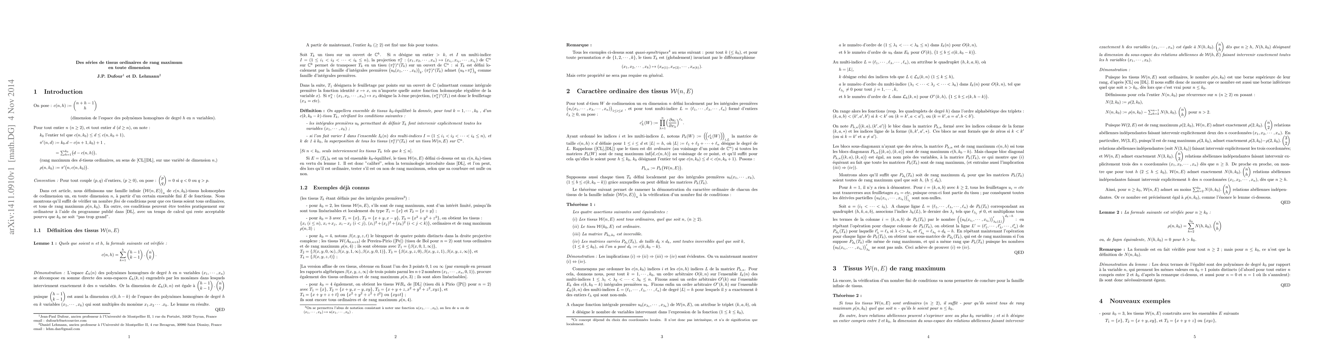In this paper, we define, from a finite set E of functions, a family of holomorphic webs ${\cal W}(n;E)$ of codimension one in any dimension $ n $. We prove that it is sufficient to check a finite number of conditions for these webs to be all ordinary and to have all maximal rank. Moreover, these conditions may be practically checked by computer with the program on Maple published in [DL](arXiv1408.3909v1, DG, 18 August 2014), the time of computation being acceptable, as far as some integer $k_0$ given in the data be "not too big".