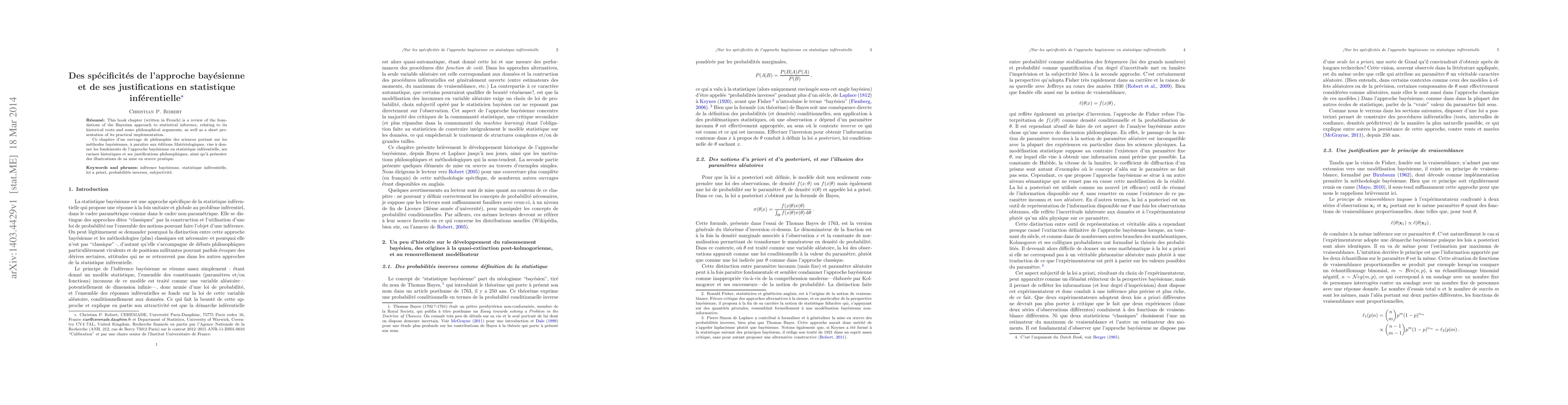 This book chapter (written in French) is a review of the foundations of the Bayesian approach to statistical inference, relating to its historical roots and some philosophical arguments, as well as a short presentation of its practical implementation.