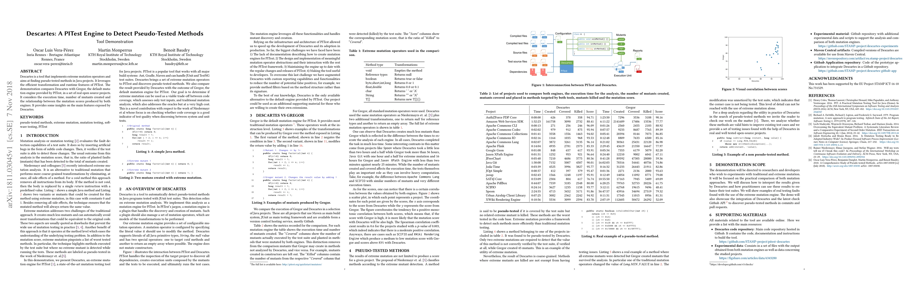 Descartes is a tool that implements extreme mutation operators and aims at finding pseudo-tested methods in Java projects. It leverages the efficient transformation and runtime features of PIT. The demonstration compares Descartes with Gregor, the default mutation engine provided by PIT, in a set of real open source projects. It considers the execution time, number of mutants created and the relationship between the mutation scores produced by both engines. It provides some insights on the main features exposed by Descartes.