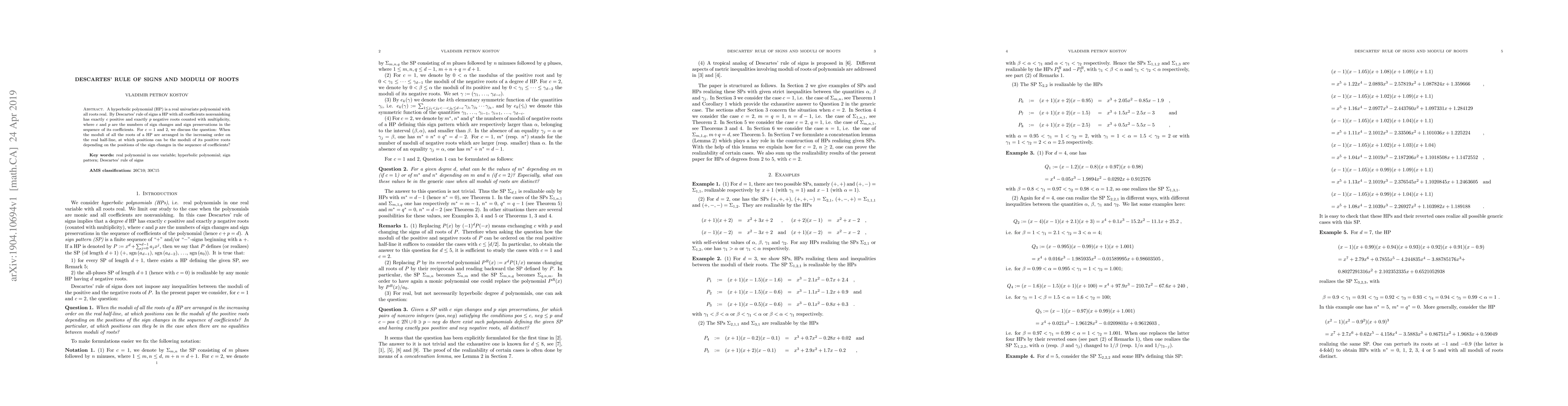 Summary: This paper explores hyperbolic polynomials with all real roots and examines the positions of positive root moduli relative to sign changes in coefficient sequences for cases when there is one or two sign changes, aiming to understand the arrangement of moduli of positive roots.