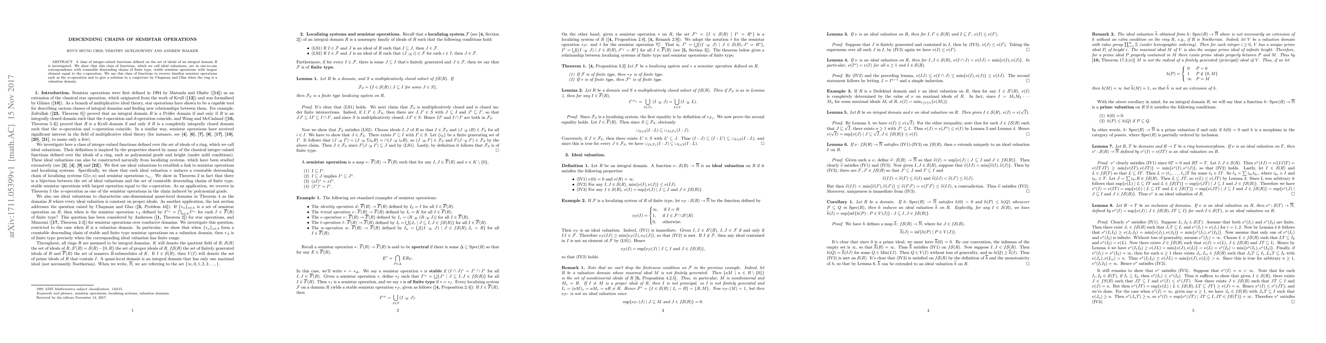 A new class of functions called ideal valuations is introduced, showing a one-to-one correspondence with countable descending chains of finite type semistar operations. This connection recovers familiar operations like the w-operation and solves a conjecture in valuation domains.