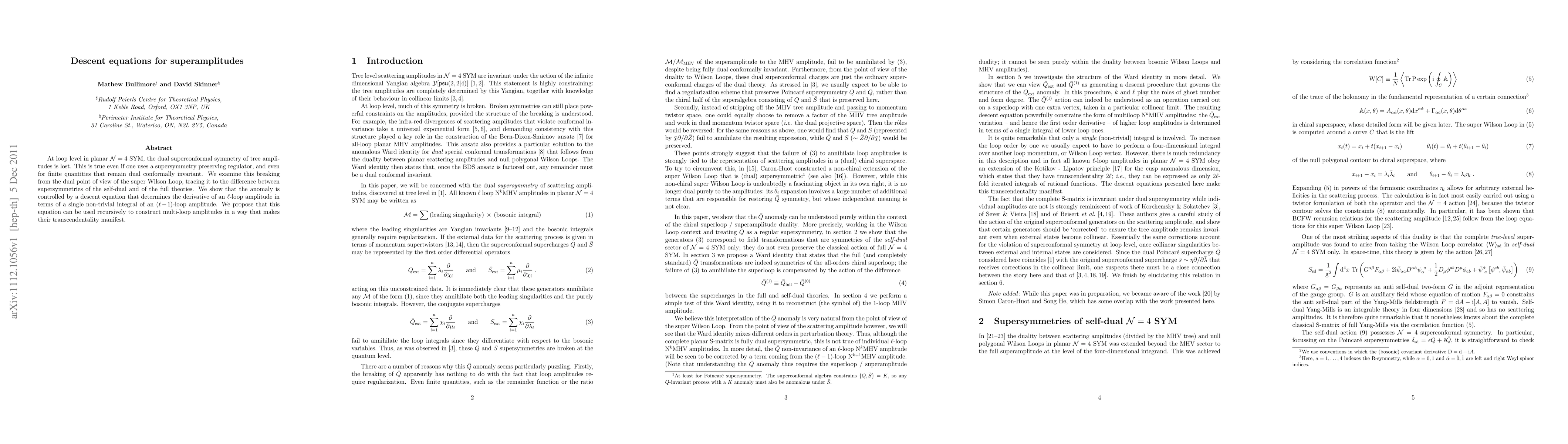 At loop level in planar N=4 super Yang-Mills, the dual superconformal symmetry of tree amplitudes is lost. This is true even if one uses a supersymmetry preserving regulator, and even for finite quantities that remain dual conformally invariant. We examine this breaking from the dual point of view of the super Wilson Loop, tracing it to the difference between supersymmetries of the self-dual and of the full theories. We show that the anomaly is controlled by a descent equation that determines the derivative of an L-loop amplitude in terms of a single non-trivial integral of an (L-1)-loop amplitude. We propose that this equation can be used recursively to construct multi-loop amplitudes in a way that makes their transcendentality manifest.