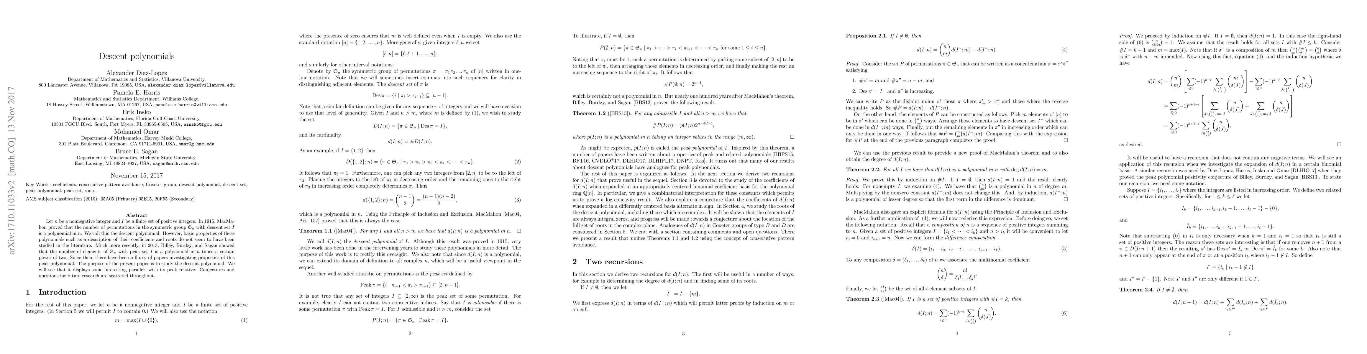 This paper investigates the descent polynomials, which count permutations in the symmetric group with a specified descent set, and explores their properties, including conjectures and parallels with peak polynomials. The study aims to uncover basic properties of these polynomials, such as their coefficients and roots, which have not been previously examined.
