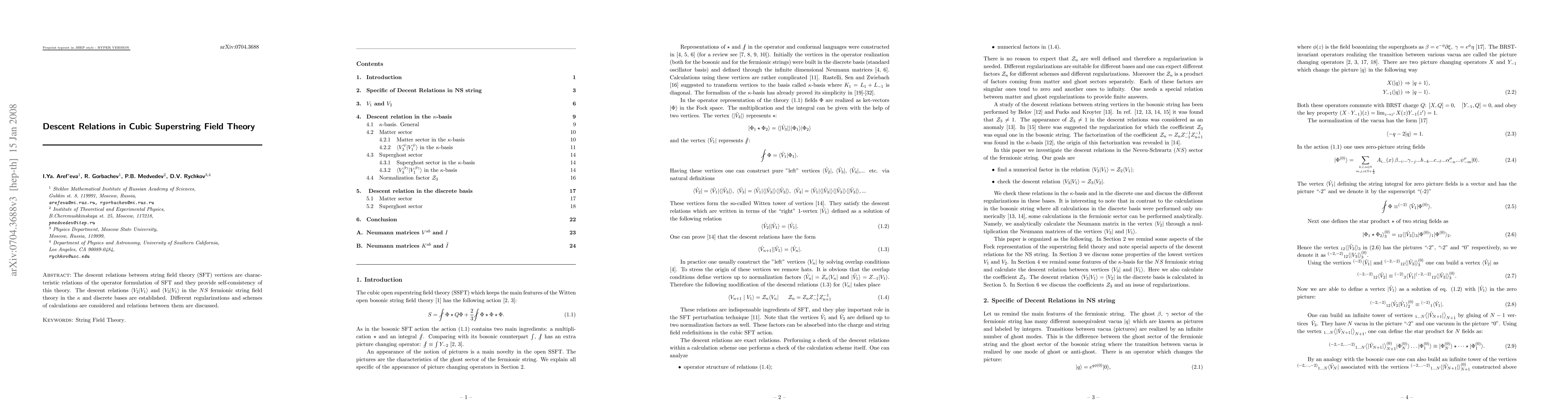This paper establishes the descent relations <V_2|V_1> and <V_3|V_1> in NS fermionic string field theory, ensuring the self-consistency of the theory. It explores various regularization methods and discusses their interrelations.