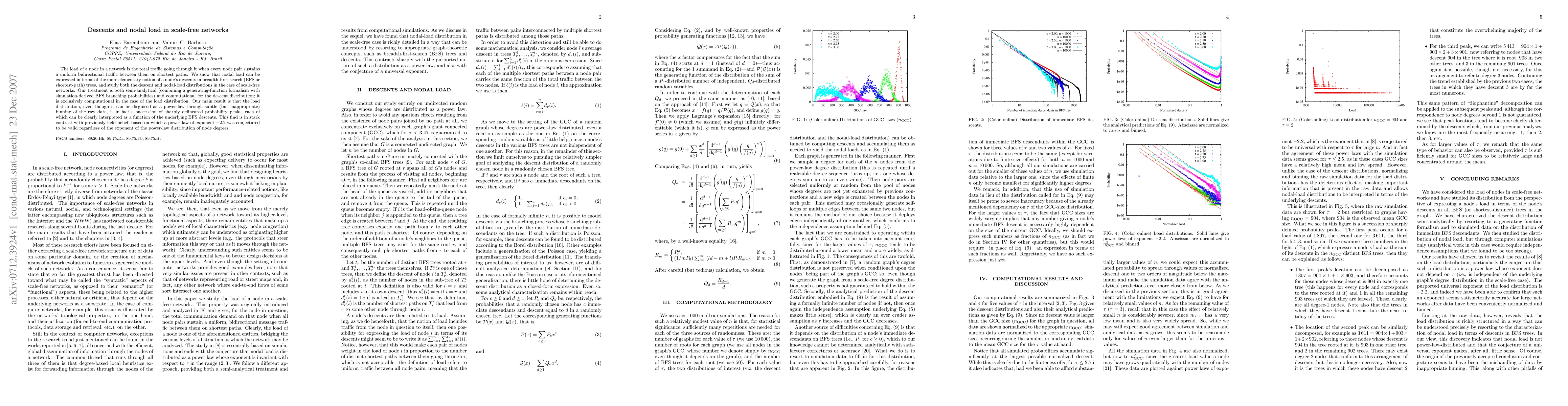 This paper investigates the relationship between nodal load and descents in scale-free networks, revealing that nodal load can be expressed in terms of node descents in BFS trees. Contrary to the previous belief, it finds that the load distribution is not a simple power law but a series of distinct probability peaks linked to BFS descents.