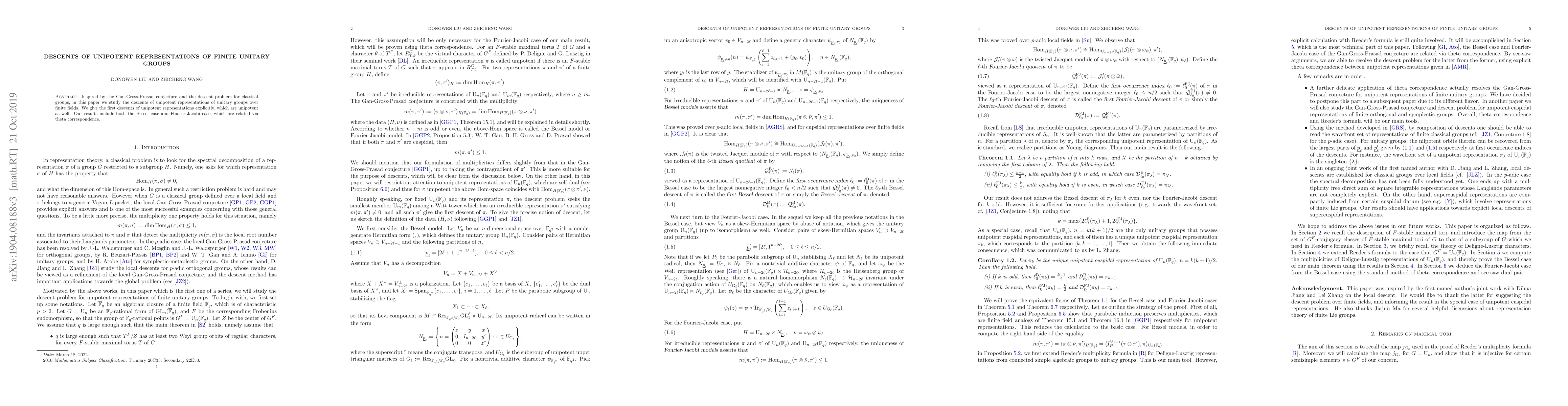 This paper explores the descents of unipotent representations of finite unitary groups, providing explicit unipotent descents inspired by the Gan-Gross-Prasad conjecture. The study covers both the Bessel and Fourier-Jacobi cases, linking them through the theta correspondence.