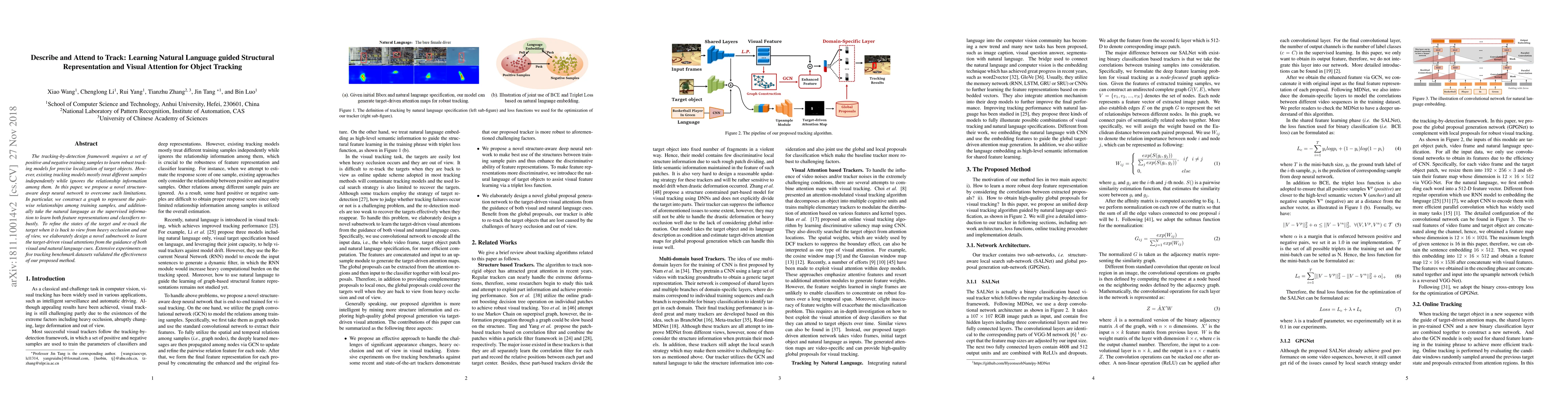 This paper proposes a novel structure-aware deep neural network for object tracking that uses a graph to represent relationships among training samples and incorporates natural language supervision to enhance feature representations and classifiers. It also introduces a subnetwork for refining target states and re-tracking after occlusion, validated by experiments on five benchmark datasets.