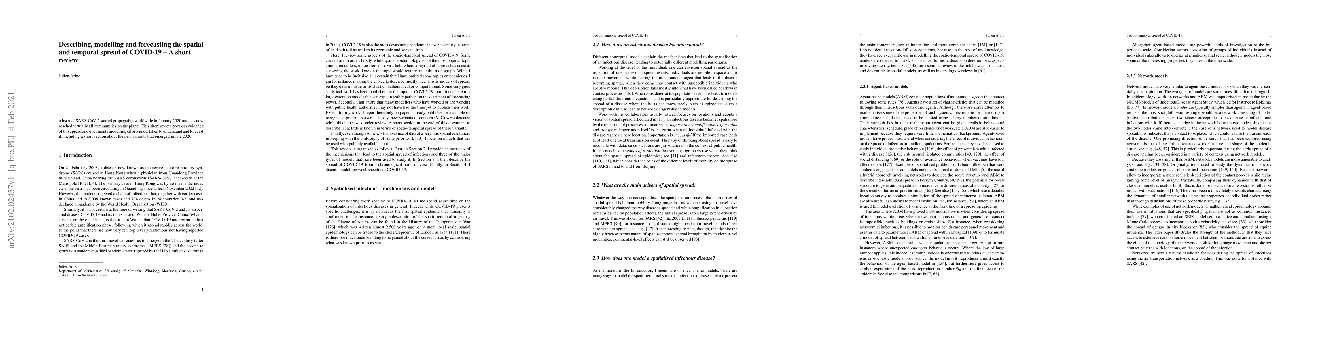 SARS-CoV-2 started propagating worldwide in January 2020 and has now reached virtually all communities on the planet. This short review provides evidence of this spread and documents modelling efforts undertaken to understand and forecast it, including a short section about the new variants that emerged in late 2020.