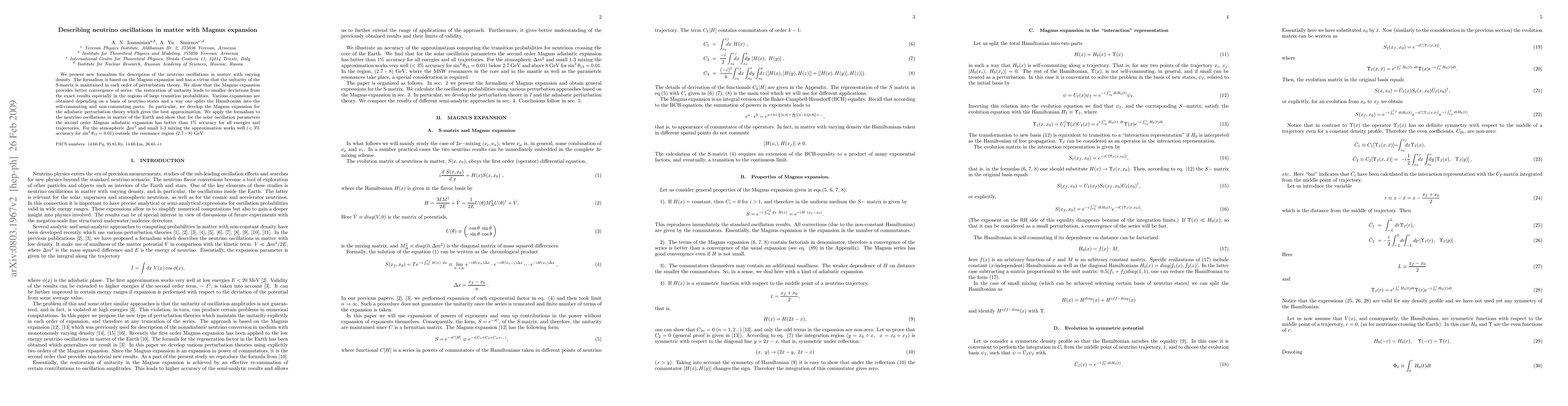 This paper introduces a new formalism for describing neutrino oscillations in matter using the Magnus expansion, which maintains unitarity and shows better convergence, especially in regions of high transition probabilities. The second-order Magnus adiabatic expansion provides better than 1% accuracy for solar neutrino oscillations and less than 3% accuracy for atmospheric oscillations outside the resonance region.
