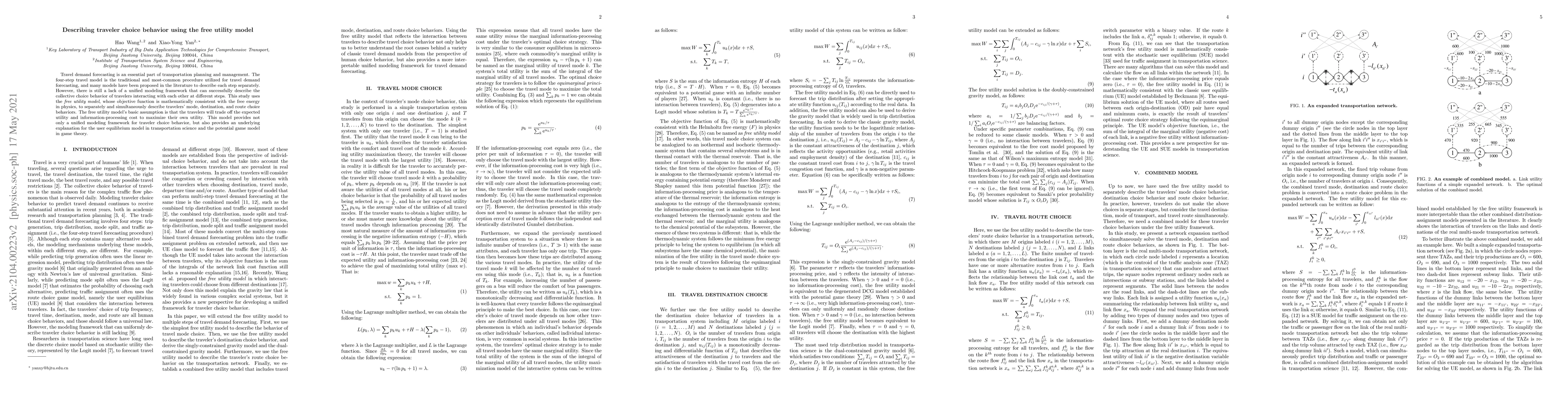 This paper proposes the free utility model to describe travelers' mode, destination, and route choice behaviors, offering a unified framework for travel demand forecasting. It leverages the concept of maximizing utility while balancing expected benefits and information-processing costs, providing new insights into user equilibrium and potential game models.