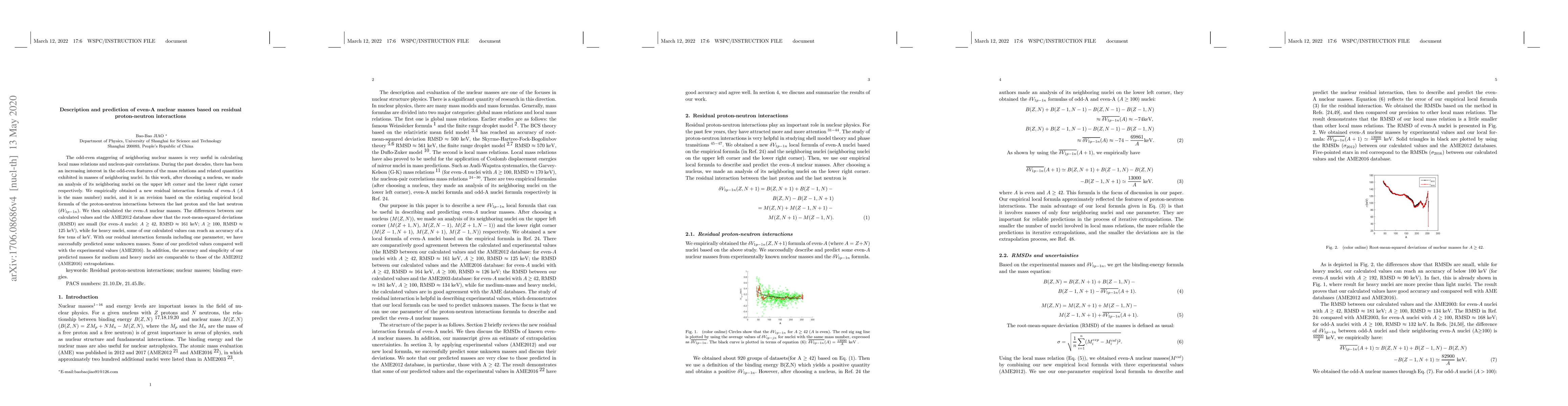 Researchers developed a new formula to predict even-A nuclear masses based on residual proton-neutron interactions, achieving small root-mean-squared deviations with accuracy comparable to existing databases for medium and heavy nuclei.