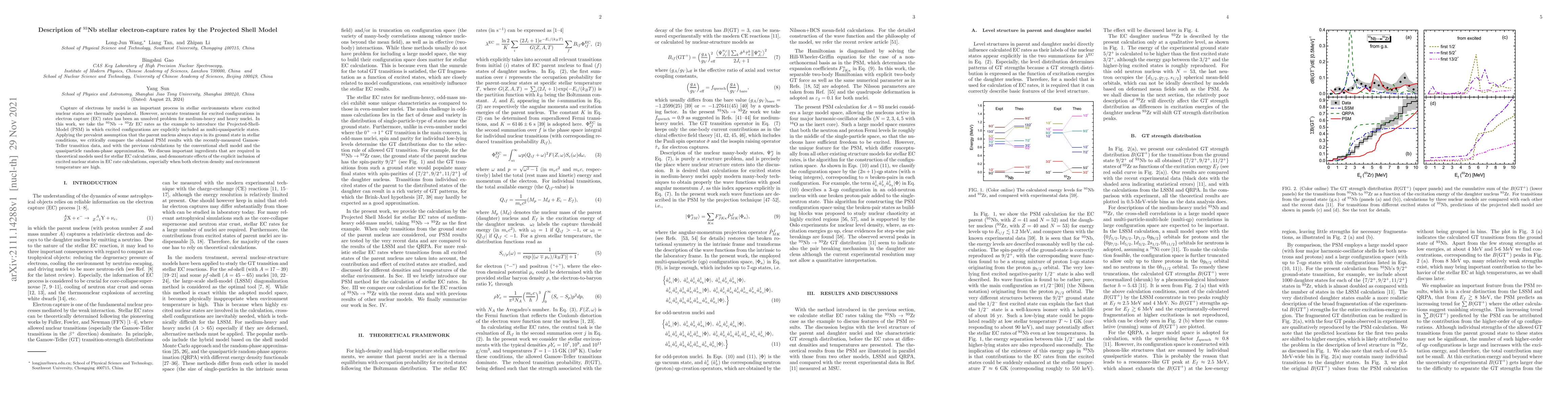 This paper introduces the Projected Shell Model (PSM) to accurately calculate stellar electron-capture rates for $^{93}$Nb to $^{93}$Zr, explicitly including excited nuclear configurations. It compares PSM results with recent experimental data and previous theoretical models, highlighting the importance of considering excited states in high-density, high-temperature stellar environments.