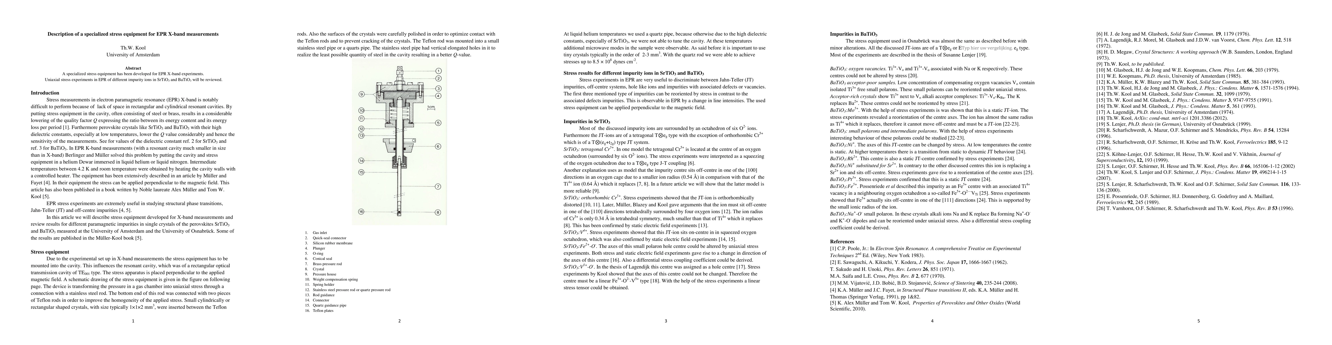 A specialized stress equipment has been developed for EPR X-band experiments. Uniaxial stress experiments in EPR of different impurity ions in SrTiO3 and BaTiO3 will be reviewed.