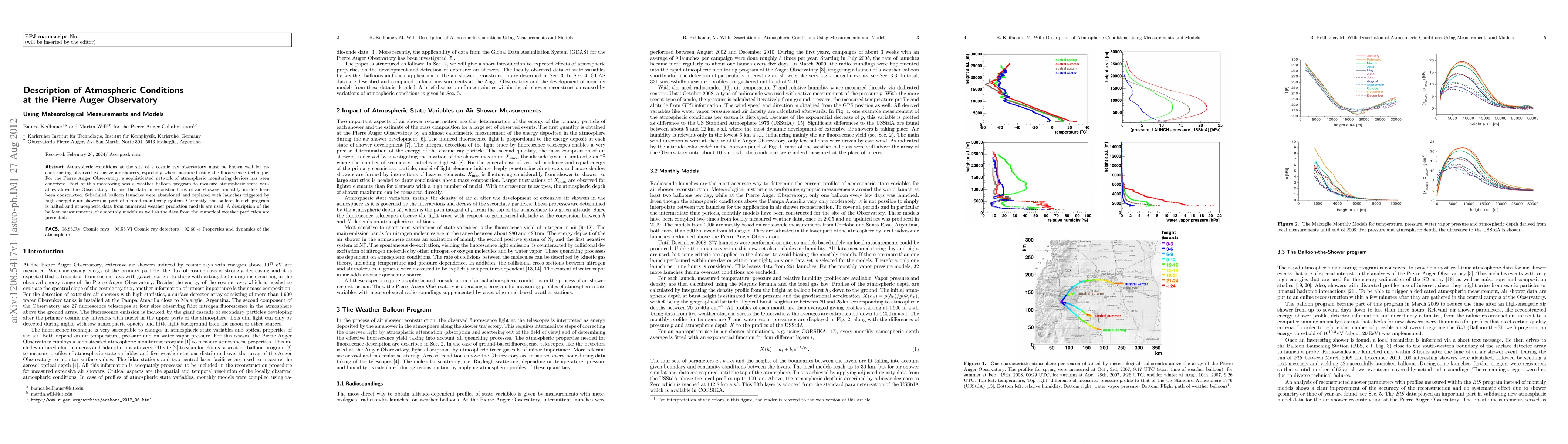 This paper describes atmospheric monitoring methods at the Pierre Auger Observatory, including a weather balloon program for measuring atmospheric conditions above the site, monthly atmospheric models, and the shift to using numerical weather prediction models for reconstructing cosmic ray-induced air showers. The balloon launch program has been halted, and reliance on numerical models has increased.