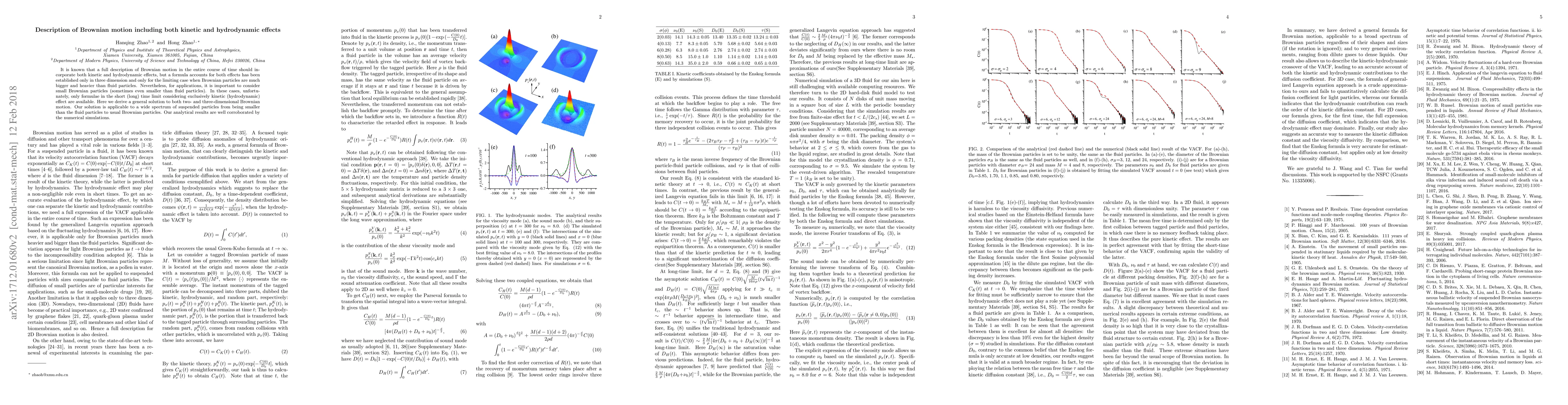 This paper presents a comprehensive analytical solution for both kinetic and hydrodynamic effects in Brownian motion across two and three dimensions, applicable to particles of various sizes relative to fluid particles. The results are validated through numerical simulations.