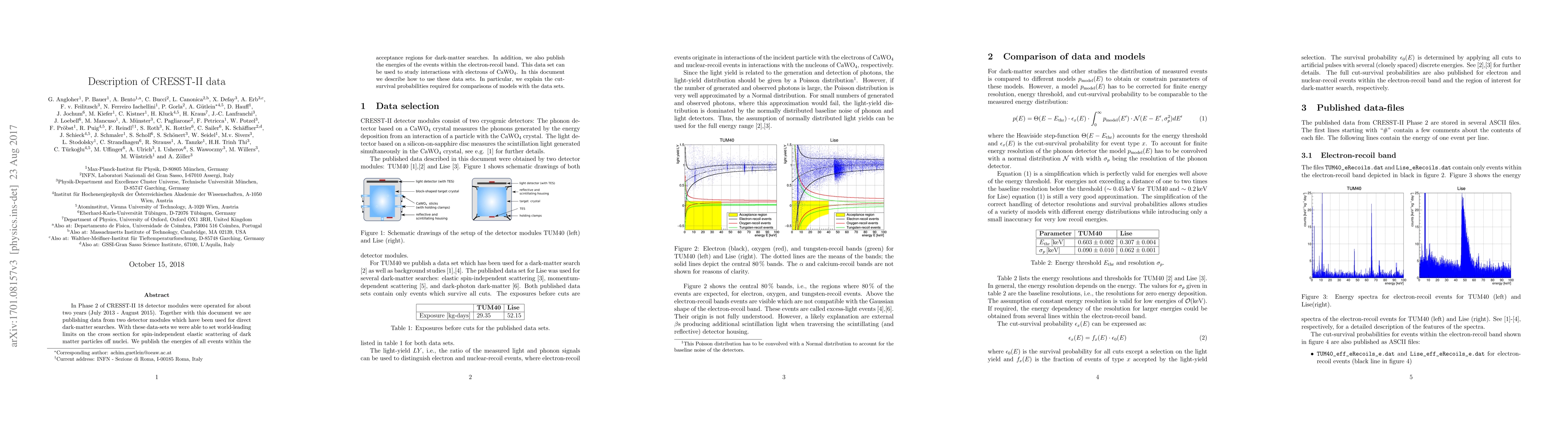 In Phase 2 of CRESST-II 18 detector modules were operated for about two years (July 2013 - August 2015). Together with this document we are publishing data from two detector modules which have been used for direct dark-matter searches. With these data-sets we were able to set world-leading limits on the cross section for spin-independent elastic scattering of dark matter particles off nuclei. We publish the energies of all events within the acceptance regions for dark-matter searches. In addition, we also publish the energies of the events within the electron-recoil band. This data set can be used to study interactions with electrons of CaWO$_4$. In this document we describe how to use these data sets. In particular, we explain the cut-survival probabilities required for comparisons of models with the data sets.