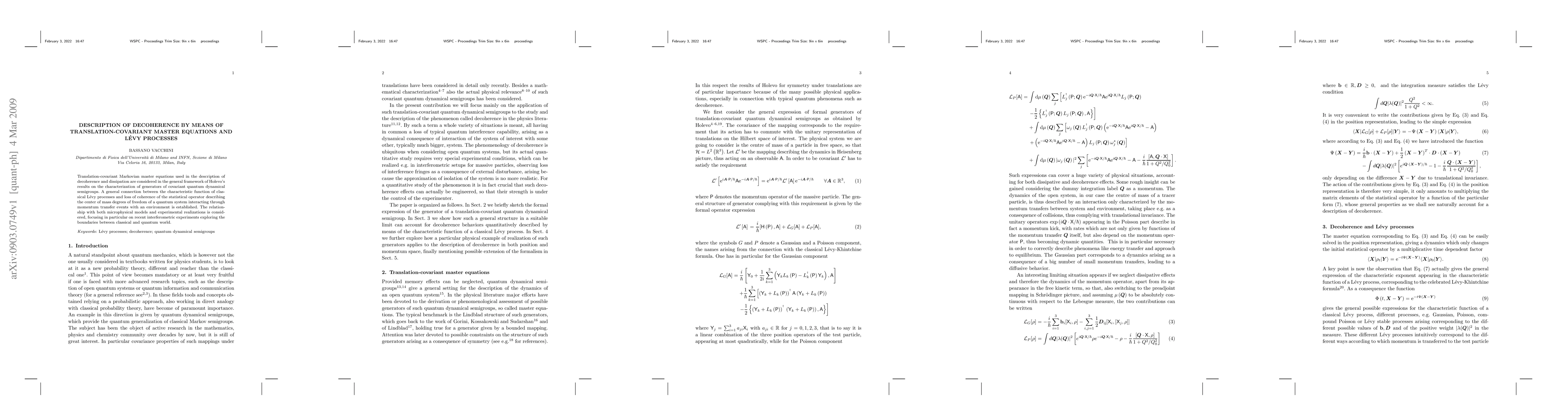 This paper explores the use of translation-covariant master equations to describe quantum decoherence, linking classical Lévy processes to the loss of coherence in quantum systems. It establishes a connection between these processes and experimental interferometric tests that probe the quantum-classical boundary.