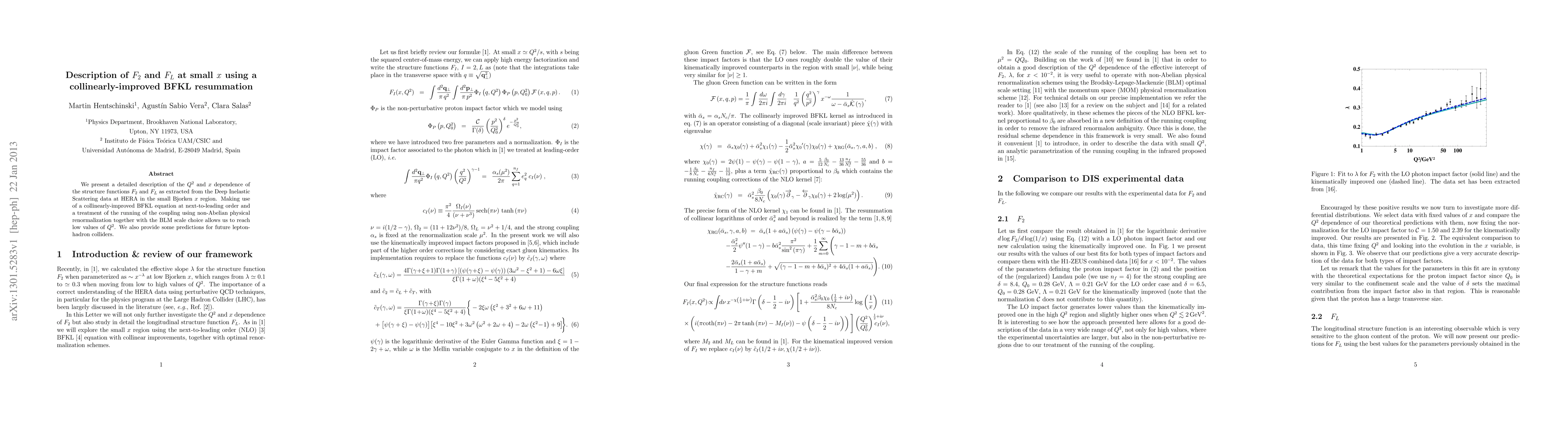 Researchers extracted Q^2 and x dependence of F2 and FL structure functions from HERA data using a new BFKL resummation method that reaches low Q^2 values, providing predictions for future lepton-hadron colliders.