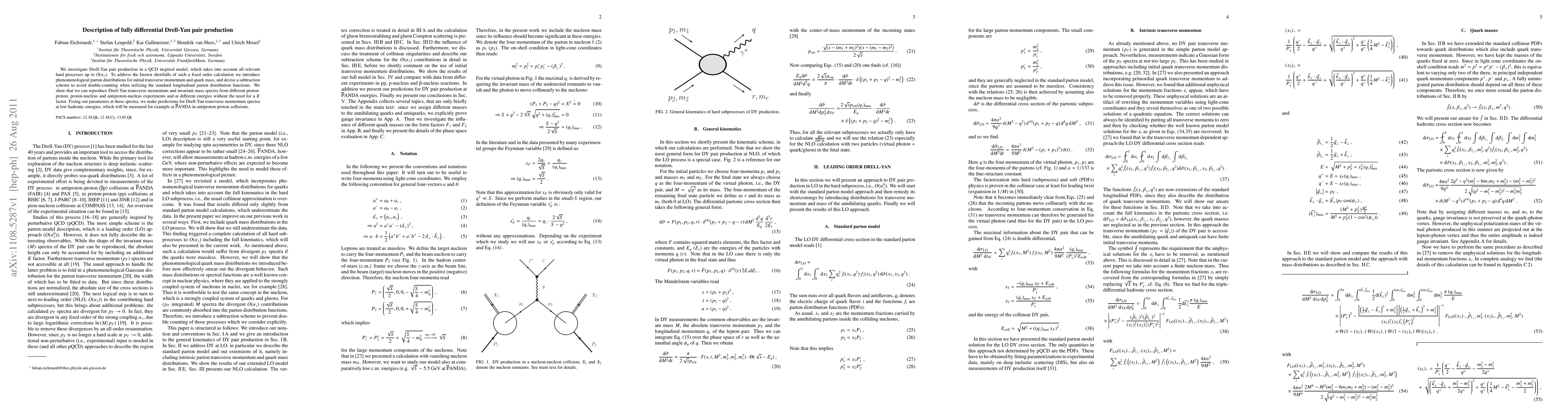 We investigate Drell-Yan pair production in a QCD inspired model, which takes into account all relevant hard processes up to $O(\alpha_s)$. To address the known shortfalls of such a fixed order calculation we introduce phenomenological parton distributions for initial transverse momentum and quark mass, and devise a subtraction scheme to avoid double-counting when utilizing the standard longitudinal parton distribution functions. We show that we can reproduce Drell-Yan transverse momentum and invariant mass spectra from different proton-proton, proton-nucleus and antiproton-nucleus experiments and at different energies without the need for a $K$ factor. Fixing our parameters at these spectra, we make predictions for Drell-Yan transverse momentum spectra at low hadronic energies, which will be measured for example at $\bar{\text{P}}$ANDA in antiproton-proton collisions.