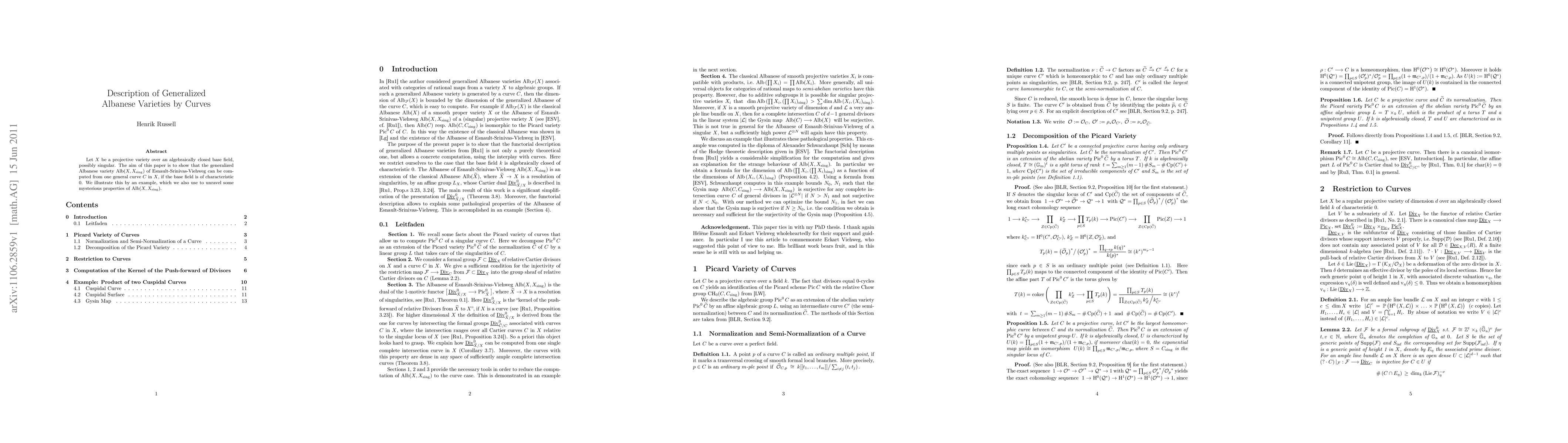 Researchers show that a projective variety's generalized Albanese variety can be computed from one general curve in characteristic 0, providing new insights into its properties.