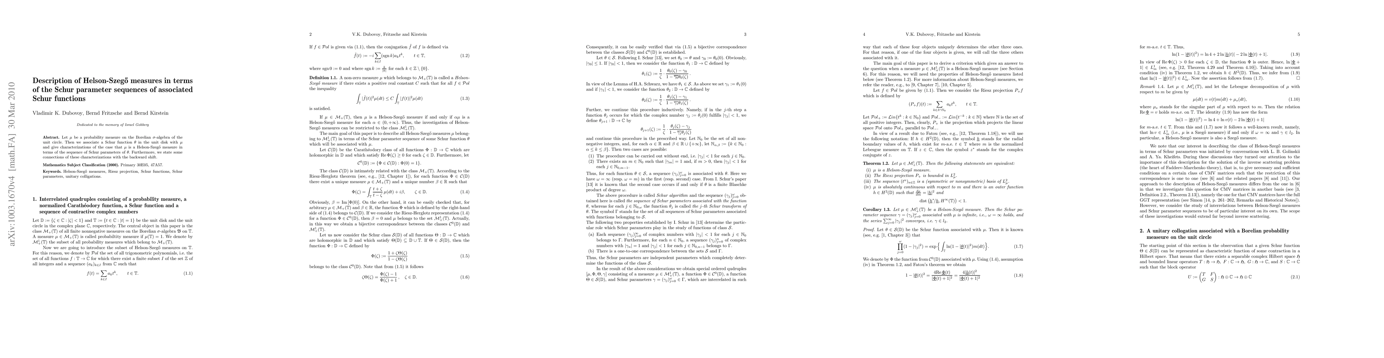 This approach links the sequence of Schur parameters to the associated Schur functions, offering a novel connection between measure theory and functional analysis.
