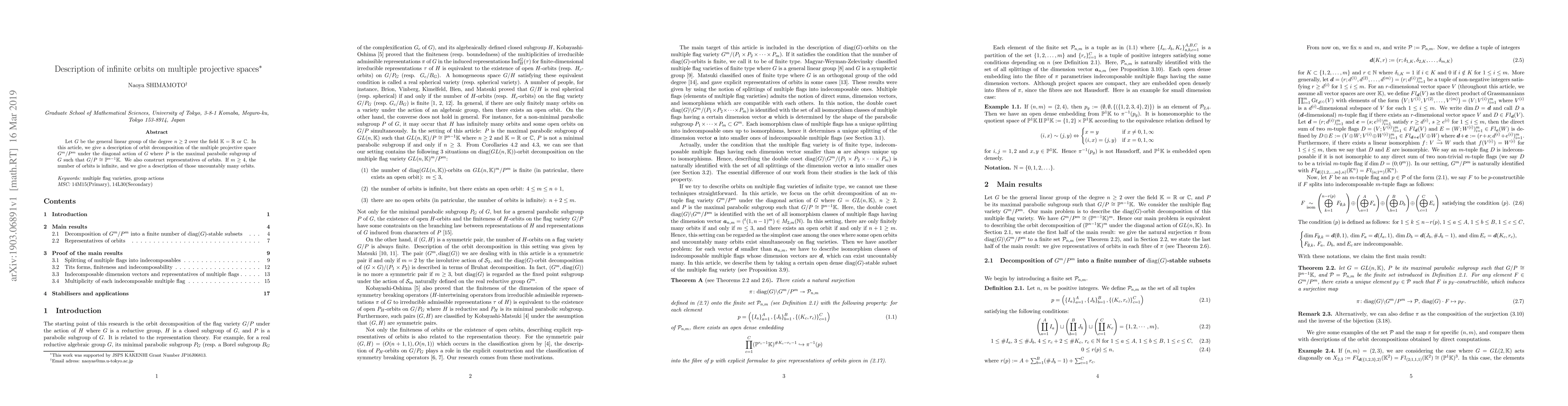 This paper describes the infinite orbits in the multiple projective space $G^m/P^m$ under the diagonal action of $G$, where $G$ is the general linear group and $P$ is its maximal parabolic subgroup. It constructs representatives of these orbits and shows that for $m \geq 4$, there are uncountably many infinite orbits.