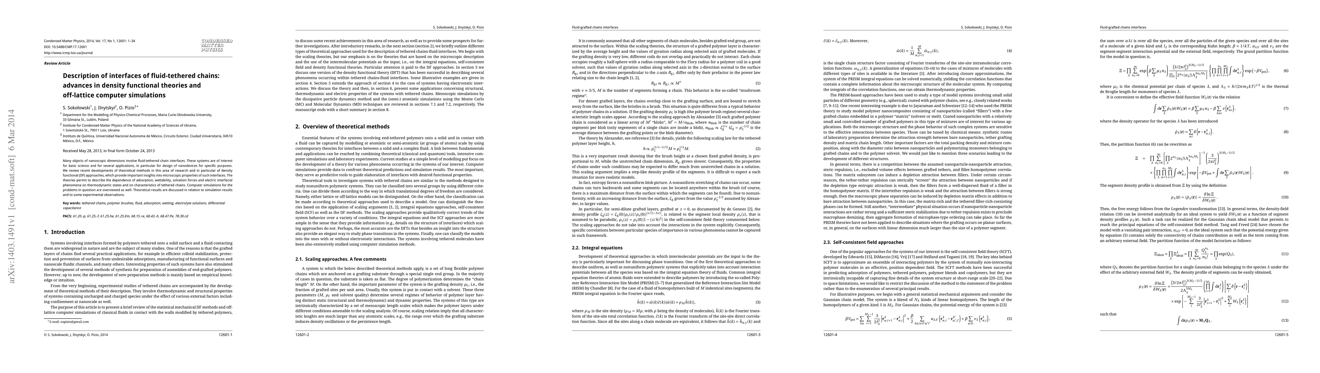 This paper reviews recent advancements in density functional theories and off-lattice computer simulations for understanding fluid-tethered chain interfaces. It highlights the theoretical methods' ability to describe adsorption, wettability, solvation forces, and electric interfacial phenomena, and compares these insights with simulation and experimental observations.