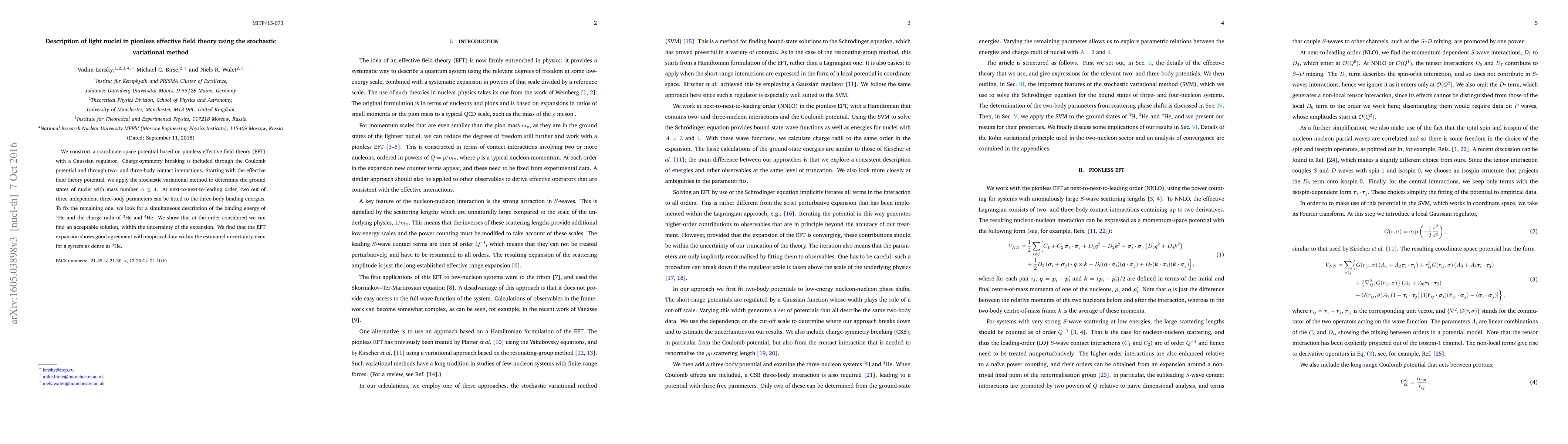 This paper constructs a pionless effective field theory potential and applies the stochastic variational method to determine ground states of light nuclei ($A\leq 4$). It fits parameters to achieve agreement with empirical data, demonstrating the potential's effectiveness in describing nuclear binding energies and charge radii.