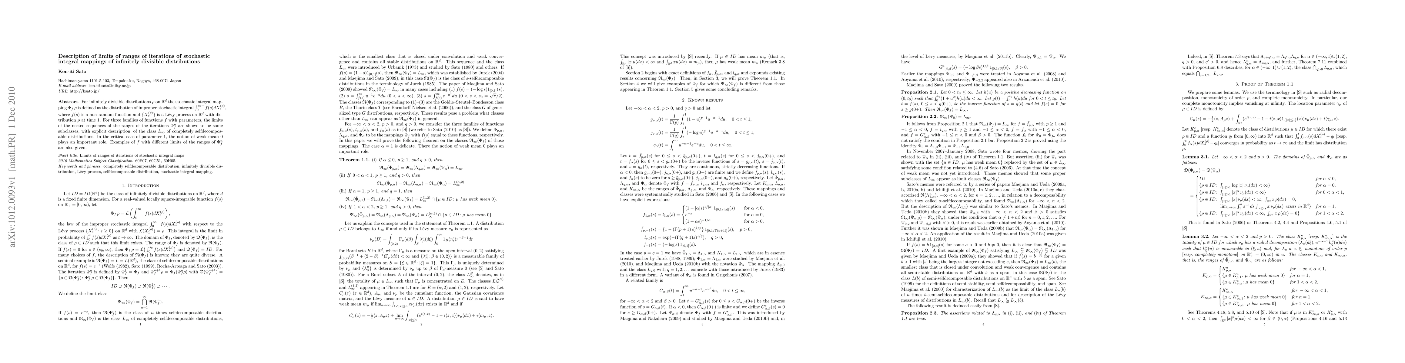 For infinitely divisible distributions $\rho$ on $\mathbb{R}^d$ the stochastic integral mapping $\Phi_f\rho$ is defined as the distribution of improper stochastic integral $\int_0^{\infty-} f(s) dX_s^{(\rho)}$, where $f(s)$ is a non-random function and $\{X_s^{(\rho)}\}$ is a L\'evy process on $\mathbb{R}^d$ with distribution $\rho$ at time 1. For three families of functions $f$ with parameters, the limits of the nested sequences of the ranges of the iterations $\Phi_f^n$ are shown to be some subclasses, with explicit description, of the class $L_{\infty}$ of completely selfdecomposable distributions. In the critical case of parameter 1, the notion of weak mean 0 plays an important role. Examples of $f$ with different limits of the ranges of $\Phi_f^n$ are also given.