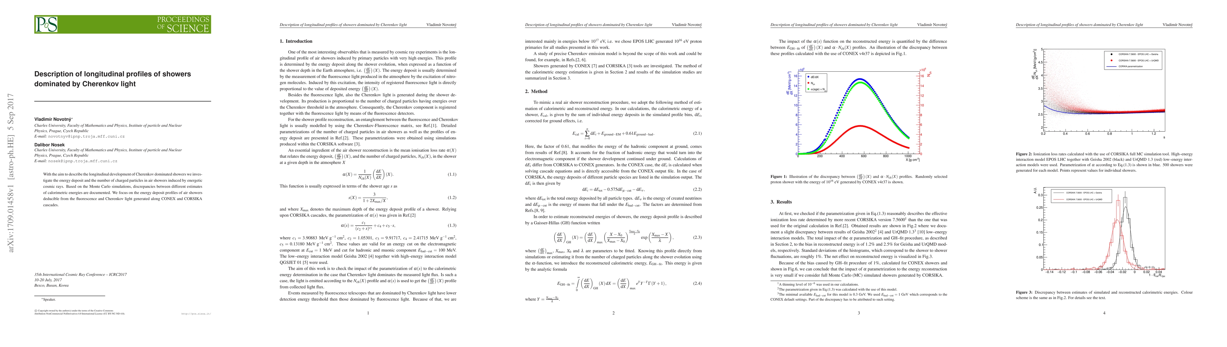 This research paper describes the longitudinal development of showers dominated by Cherenkov light in air showers induced by cosmic rays, highlighting discrepancies in energy deposit estimates. It focuses on energy profiles deducible from fluorescence and Cherenkov light generated during cascades.