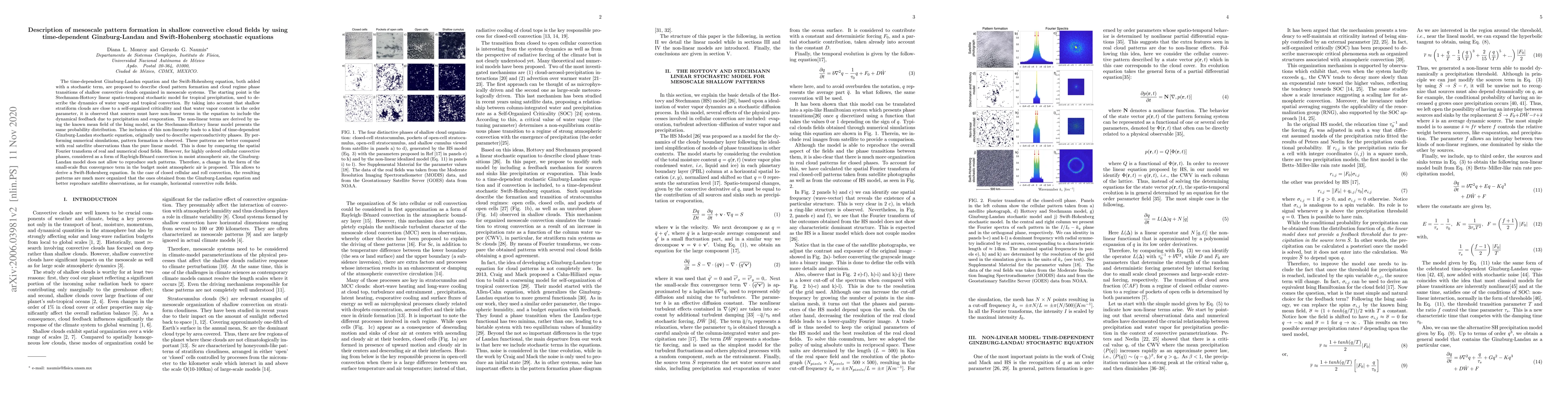 Researchers used a combination of Ginzburg-Landau and Swift-Hohenberg equations to model mesoscale pattern formation in shallow convective clouds, achieving more organized and realistic patterns compared to previous models.