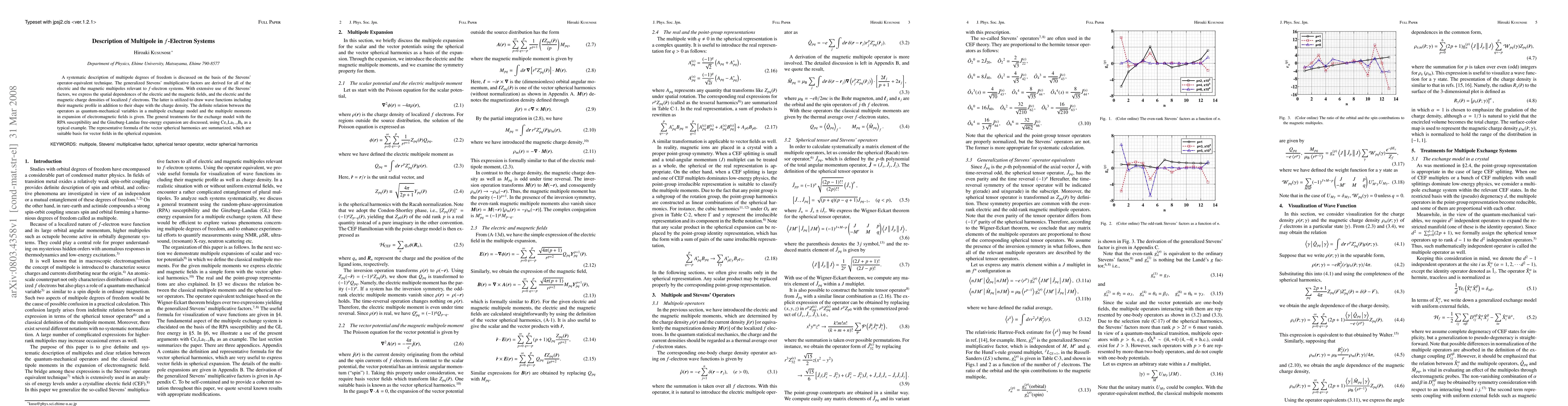 This paper systematically describes multipole degrees of freedom in f-electron systems using Stevens' operator-equivalent technique, deriving generalized multiplicative factors for electric and magnetic multipoles. It applies these factors to express spatial dependencies of fields and charge densities, and discusses their implications in multipole exchange models and RPA susceptibility.