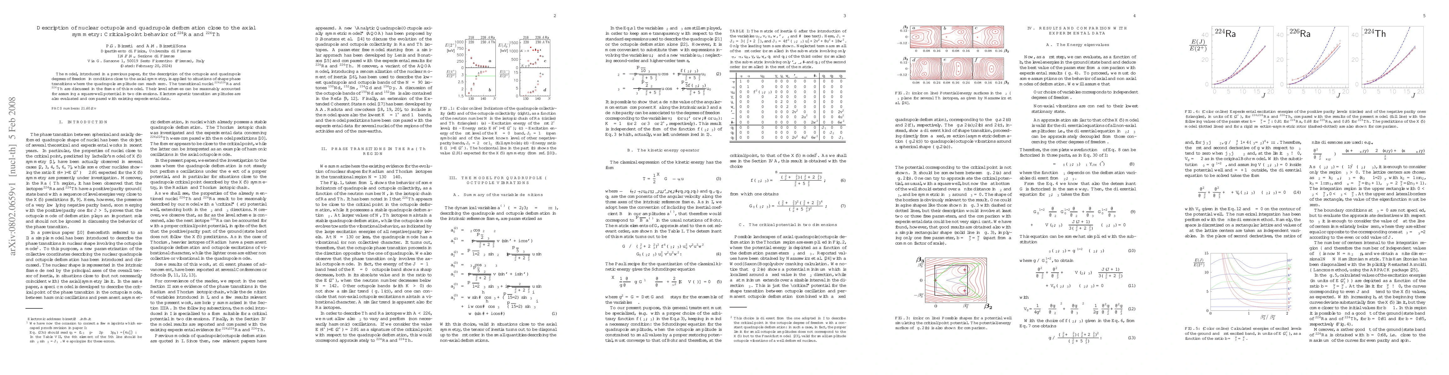 The model, introduced in a previous paper, for the description of the octupole and quadrupole degrees of freedom in conditions close to the axial symmetry, is applied to situations of shape phase transitions where the quadrupole amplitude can reach zero. The transitional nuclei 224,226Ra and 224Th are discussed in the frame of this model. Their level schemes can be reasonably accounted for assuming a square-well potential in two dimensions. Electromagnetic transition amplitudes are also evaluated and compared with existing experimental data.