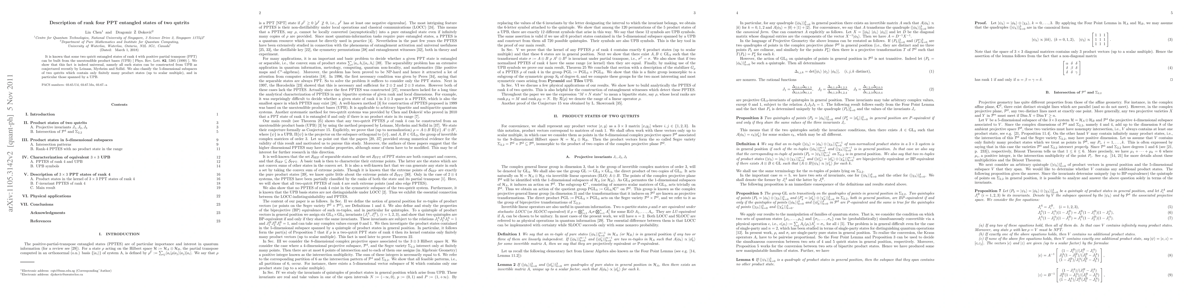 It is known that some two qutrit entangled states of rank 4 with positive partial transpose [PPT] can be built from the unextendible product bases [UPB]. We show that this fact is indeed universal, namely all such states can be constructed from UPB. We also classify the 5-dimensional subspaces of two qutrits which contain only finitely many product states (up to scalar multiple), and in particular those spanned by a UPB.