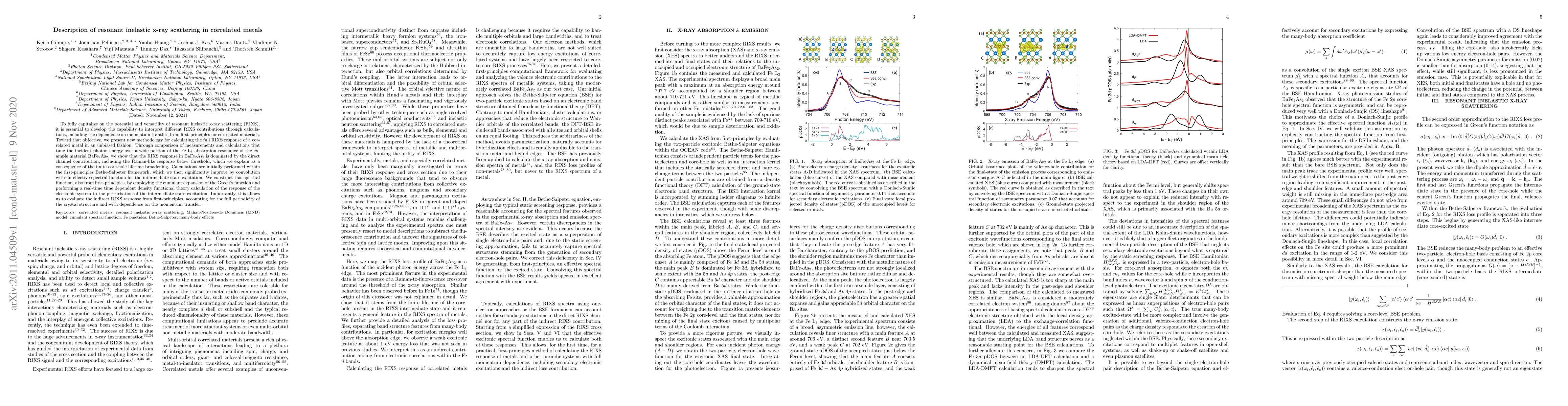 To fully capitalize on the potential and versatility of resonant inelastic x-ray scattering (RIXS), it is essential to develop the capability to interpret different RIXS contributions through calculations, including the dependence on momentum transfer, from first-principles for correlated materials. Toward that objective, we present new methodology for calculating the full RIXS response of a correlated metal in an unbiased fashion. Through comparison of measurements and calculations that tune the incident photon energy over a wide portion of the Fe L$_3$ absorption resonance of the example material BaFe$_2$As$_2$, we show that the RIXS response in BaFe$_2$As$_2$ is dominated by the direct channel contribution, including the Raman-like response below threshold, which we explain as a consequence of the finite core-hole lifetime broadening. Calculations are initially performed within the first-principles Bethe-Salpeter framework, which we then significantly improve by convolution with an effective spectral function for the intermediate-state excitation. We construct this spectral function, also from first-principles, by employing the cumulant expansion of the Green's function and performing a real-time time dependent density functional theory calculation of the response of the electronic system to the perturbation of the intermediate-state excitation. Importantly, this allows us to evaluate the indirect RIXS response from first-principles, accounting for the full periodicity of the crystal structure and with dependence on the momentum transfer.