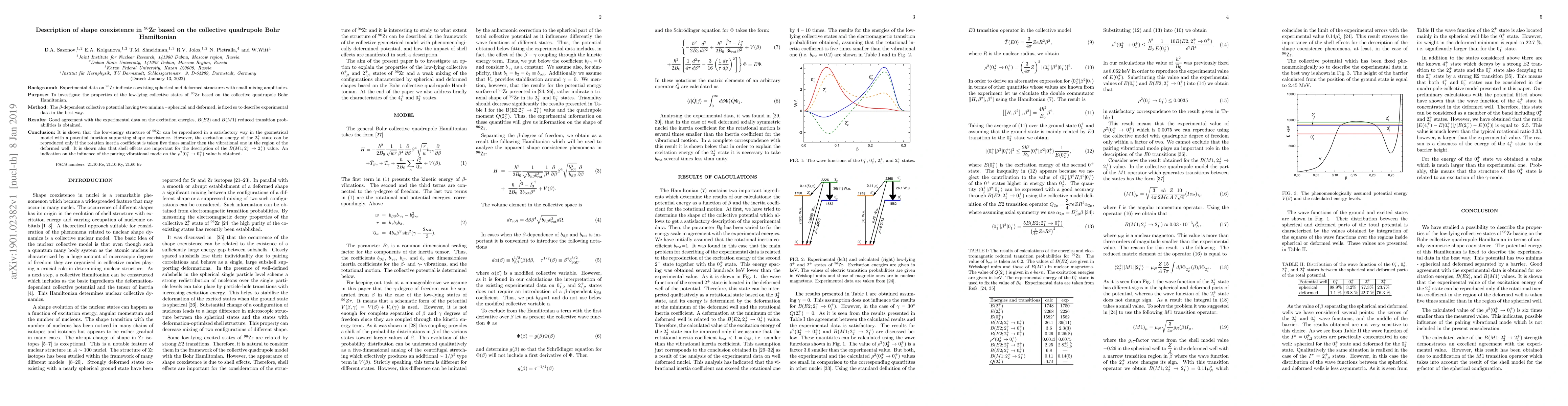 This paper investigates the shape coexistence in $^{96}$Zr using the collective quadrupole Bohr Hamiltonian, showing good agreement with experimental data on low-lying states. The model requires a significantly smaller rotational inertia coefficient for the deformed well to accurately reproduce the $2^+_2$ state's excitation energy.