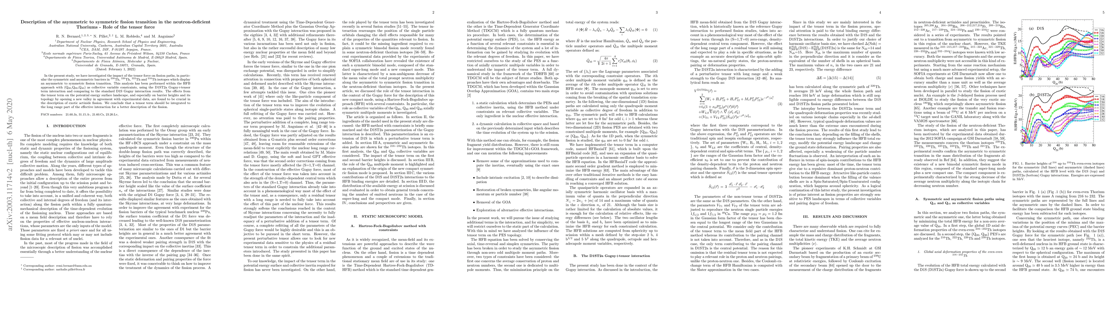 In the present study, we have investigated the impact of the tensor force on fission paths, in particular the symmetric and asymmetric barriers in 230 Th, 226 Th, 222 Th and 216 Th isotopes which display an asymmetric to symmetric fission transition. This analysis has been performed within the HFB approach with (Q 20 ,Q 30 ,Q 40 ) as collective variable constraints, using the D1ST2a Gogny+tensor term interaction and comparing to the standard D1S Gogny interaction results. The effects from the tensor term on the potential energy surface landscape, and especially on barrier heights and its topology by opening a new valley in agreement with experimental data, are found to be crucial in the description of exotic actinide fission. We conclude that a tensor term should be integrated to the long range part of the effective interaction for a better description of the fission.