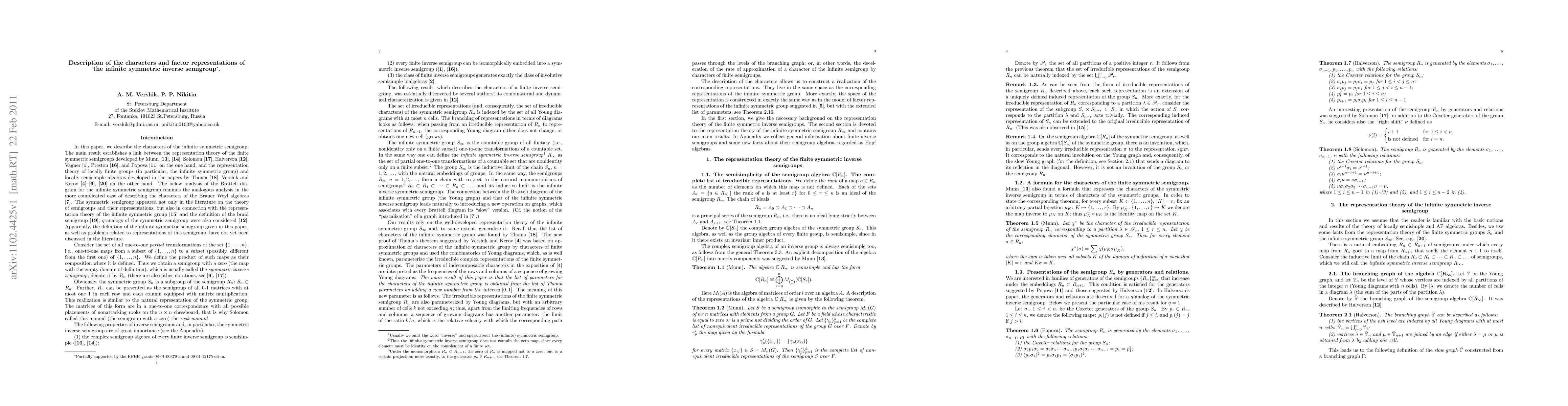 This paper provides a comprehensive list of indecomposable characters for the infinite symmetric inverse semigroup, introducing a single new parameter with a clear combinatorial interpretation. It leverages representation theories from both finite symmetric semigroups and the infinite symmetric group for its analysis.